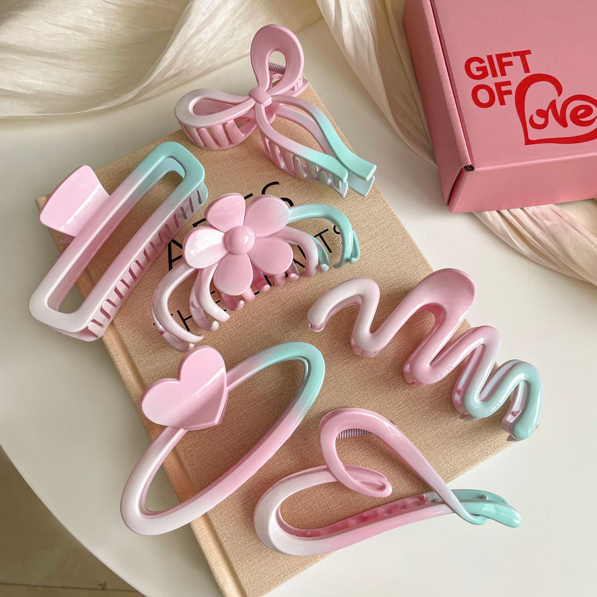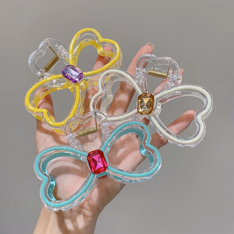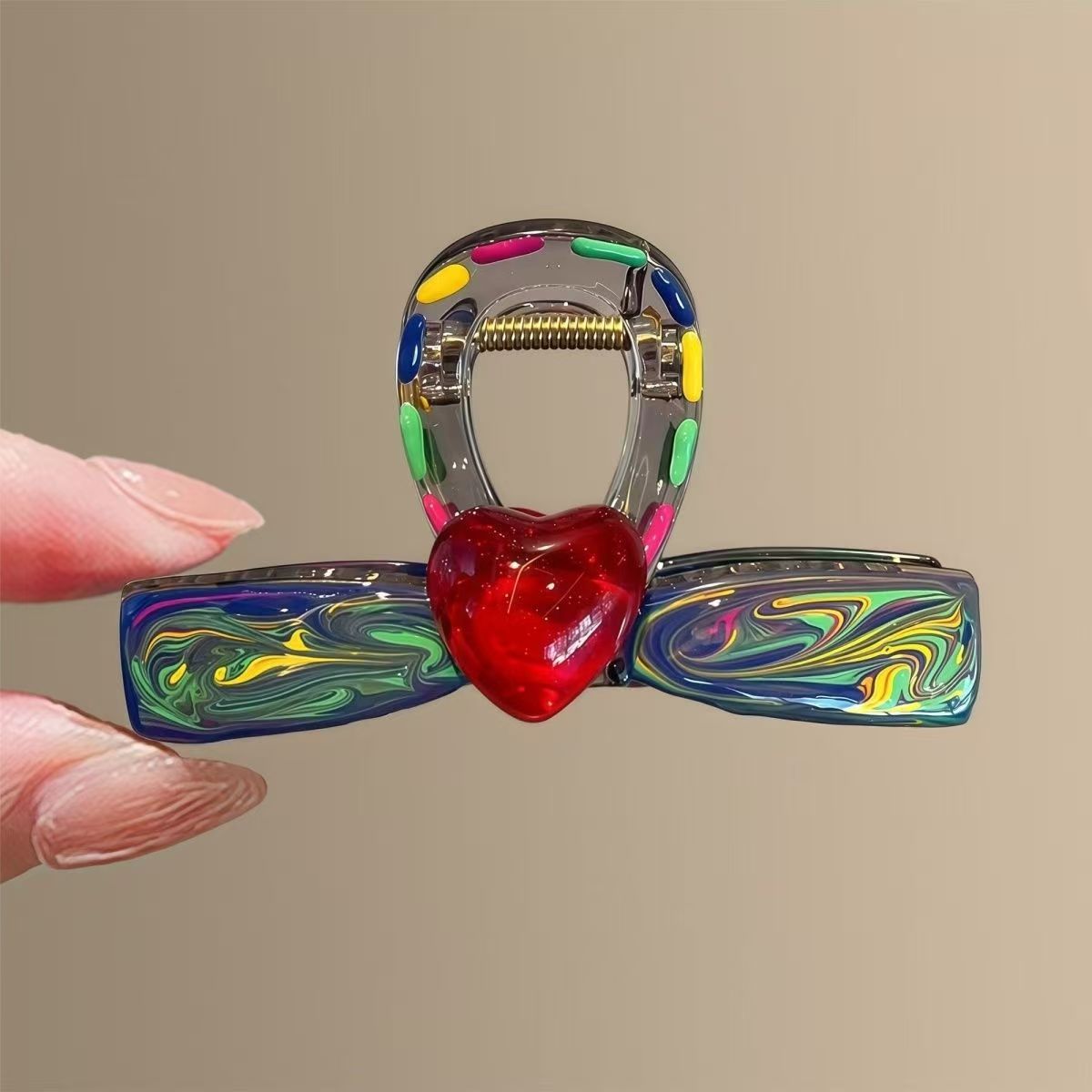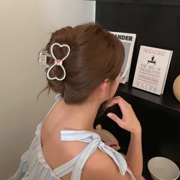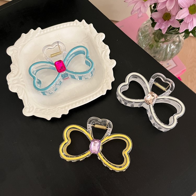 高级感晕染彩色爱心发夹气质后脑勺鲨鱼夹盘发简约新款蝴蝶结夹子