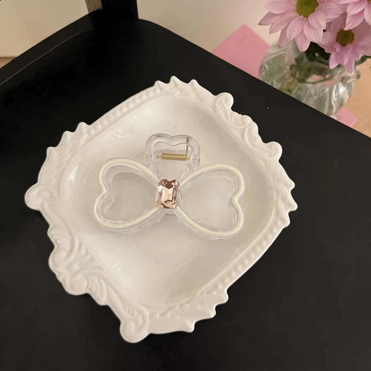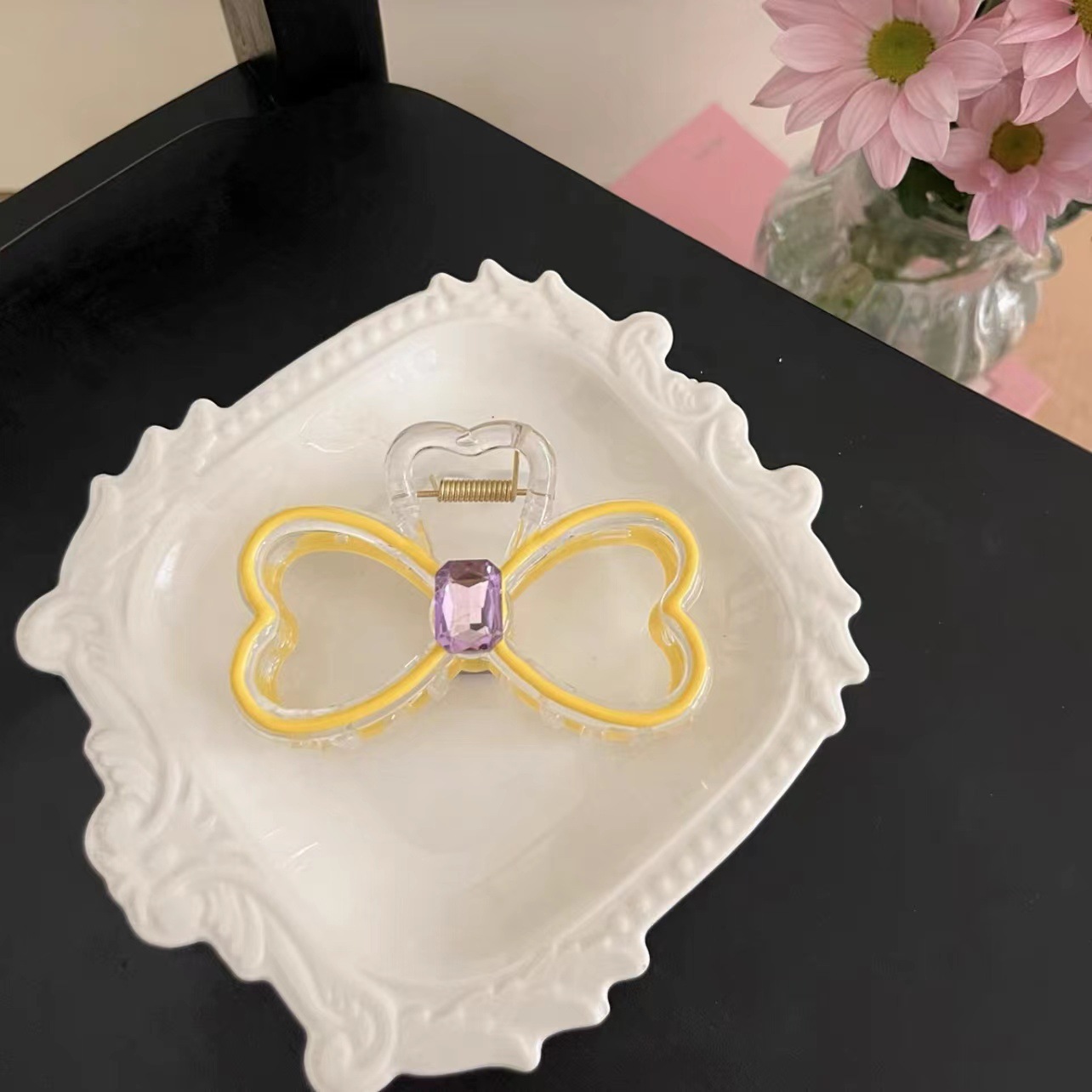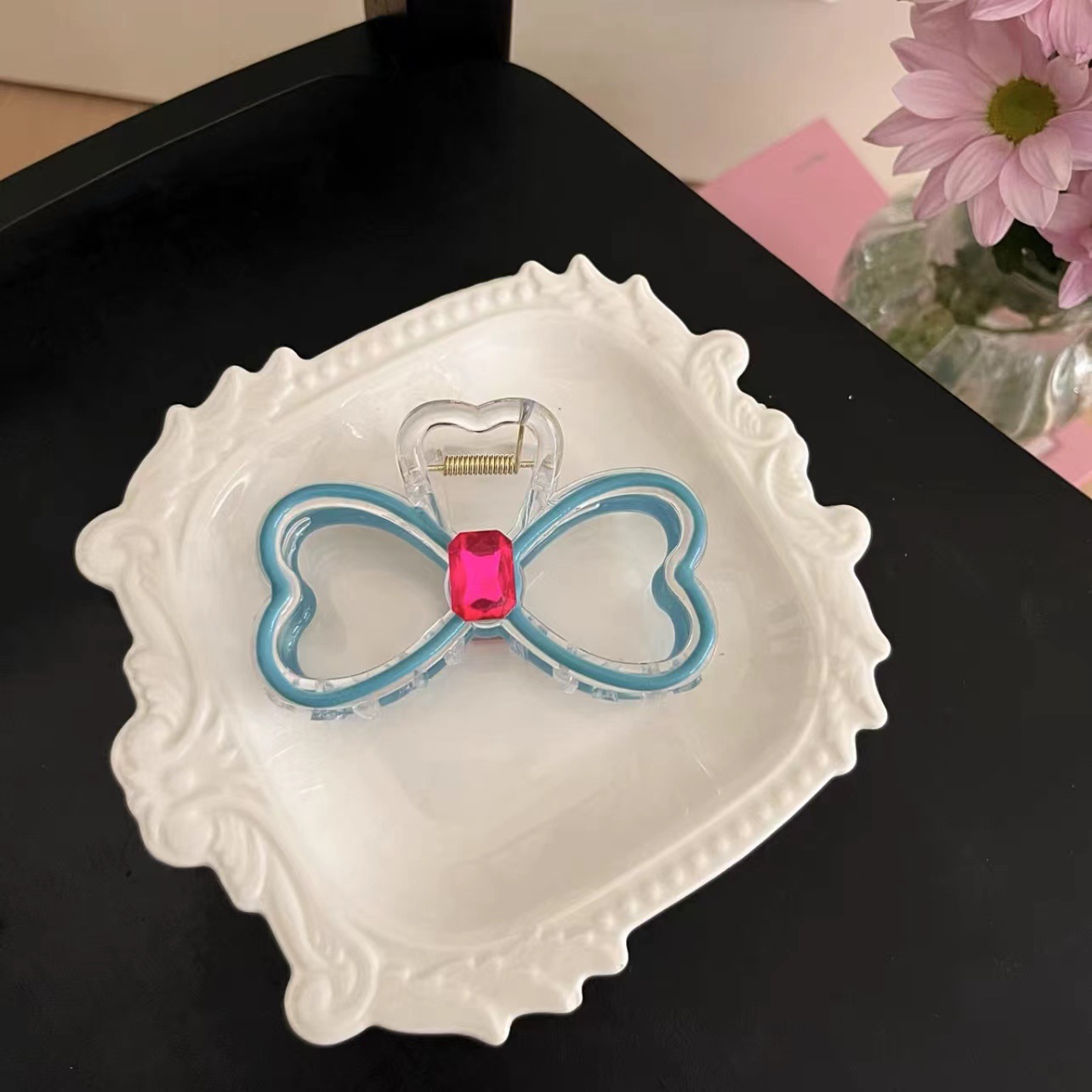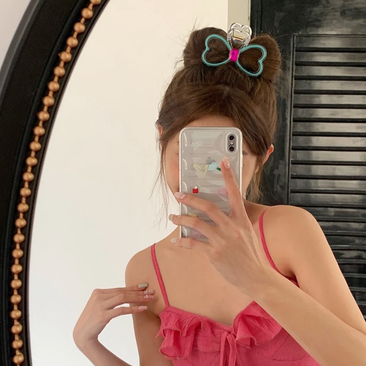 高级感晕染彩色爱心发夹气质后脑勺鲨鱼夹盘发简约新款蝴蝶结夹子