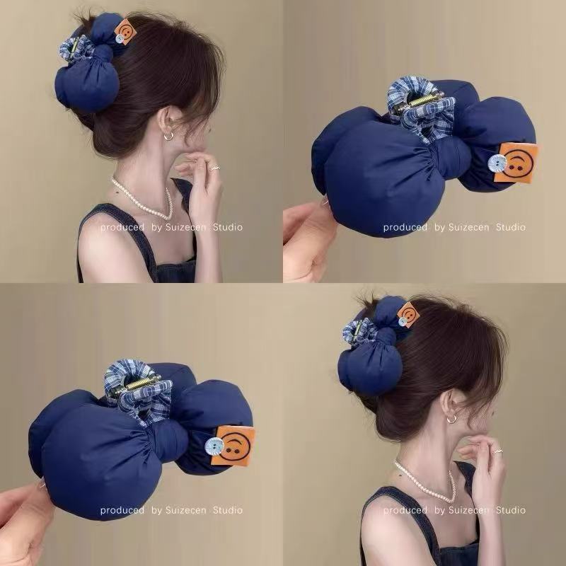 韩国超软可爱充棉蝴蝶结笑脸鲨鱼夹AB面纽扣黄蓝色盘发抓夹饰品女