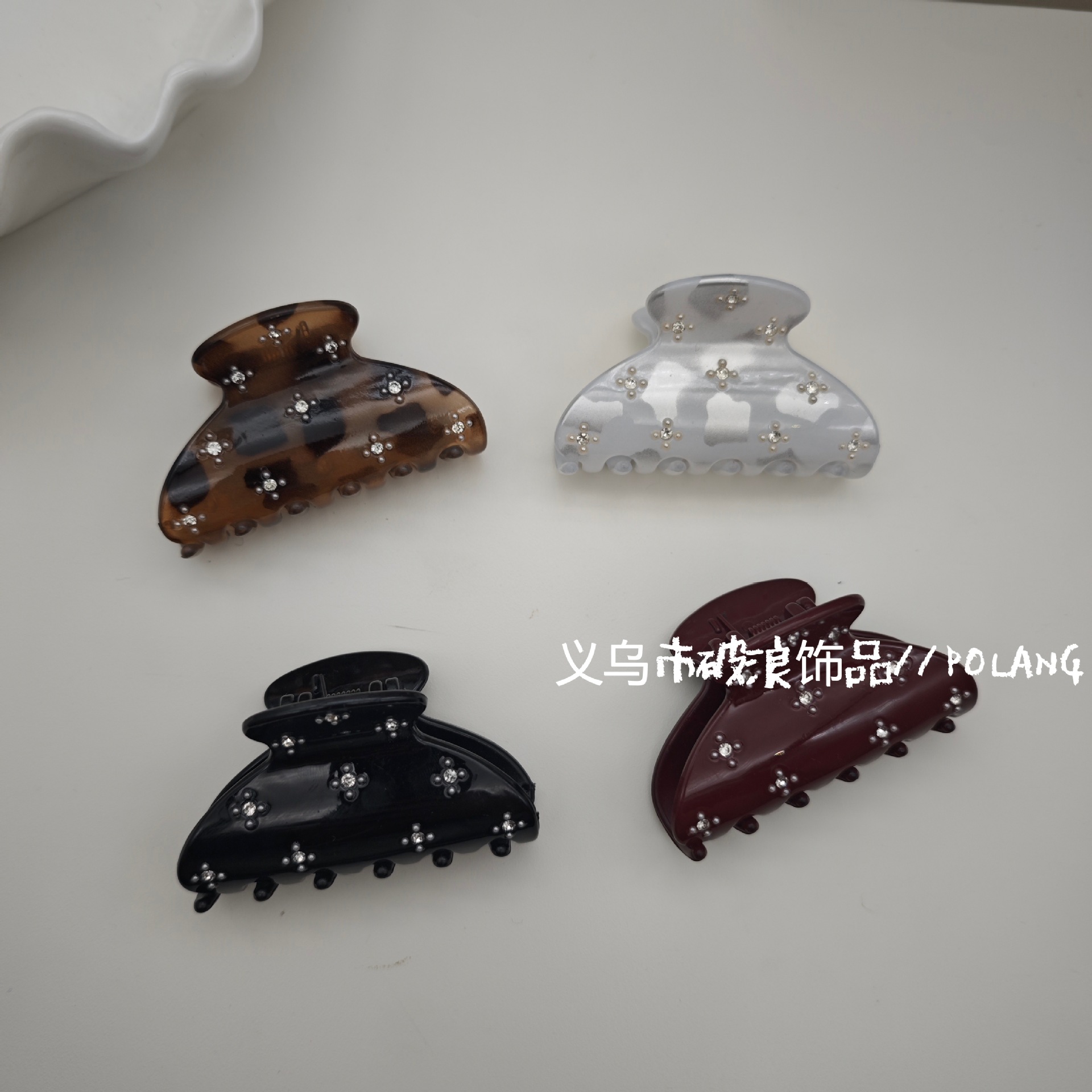 韩式镶钻醋酸抓夹女后脑勺盘发鲨鱼夹气质发抓高马尾固定发卡头饰