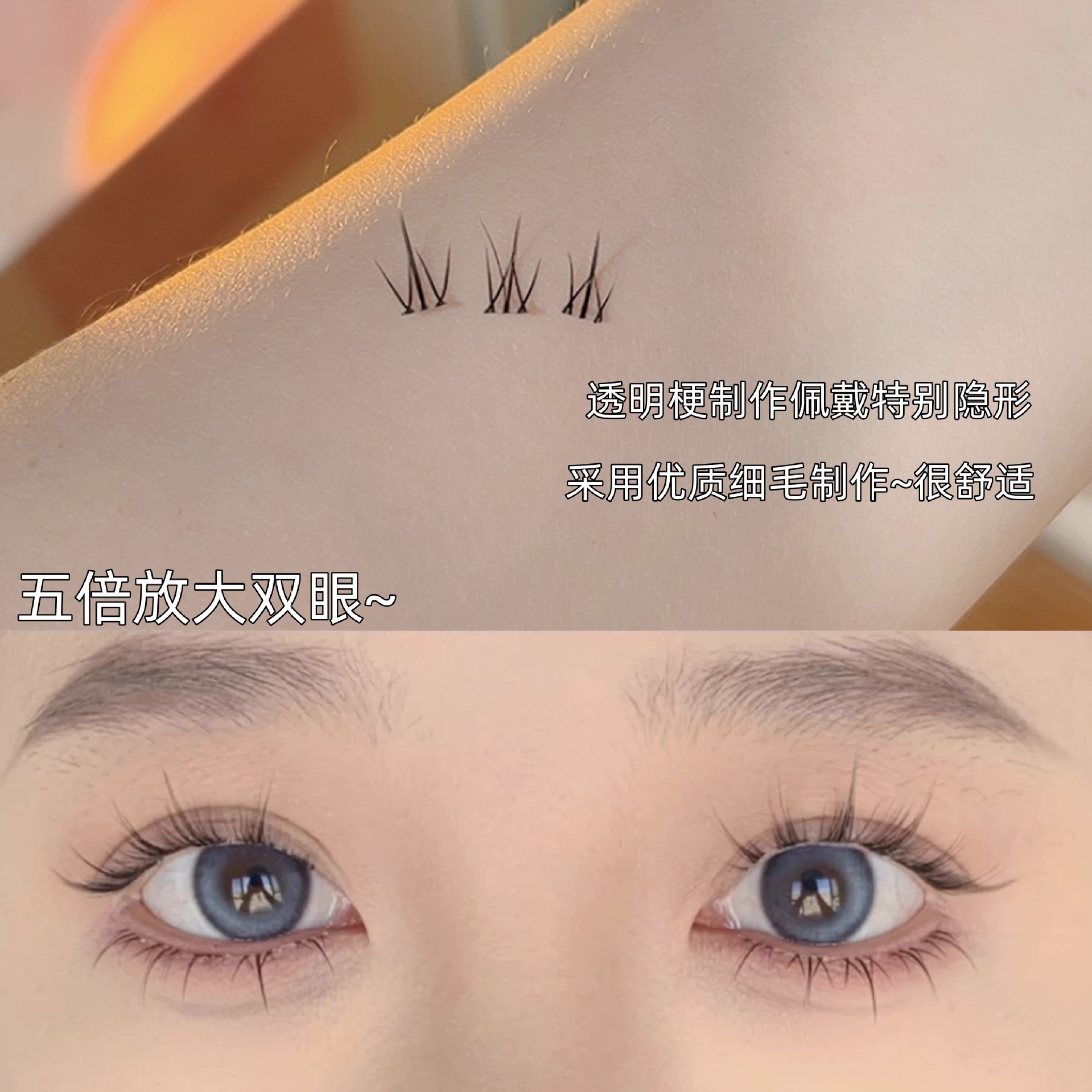 FAICCIA霏汐免ゴム双クラスタの小さい炎の下でまつげのつけまつげの女性の自然なシミュレーションの透明な茎は接着剤を免除します。