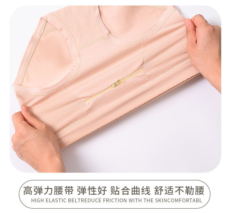 純綿の高腰の大きいサイズはポケットのファスナーを持っています。