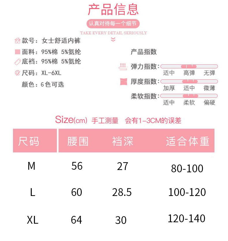 中年妈妈内裤 女士纯棉高腰 舒适简约印花大码200斤 中老年人短裤