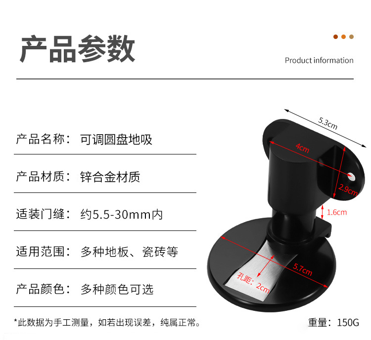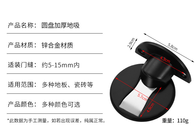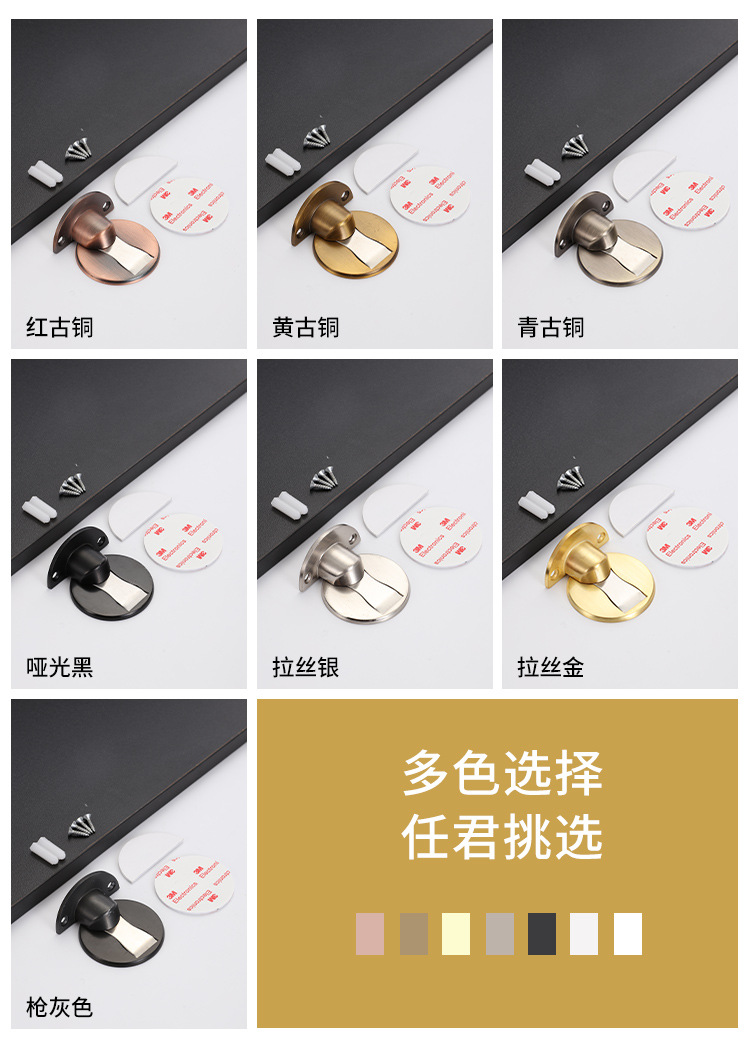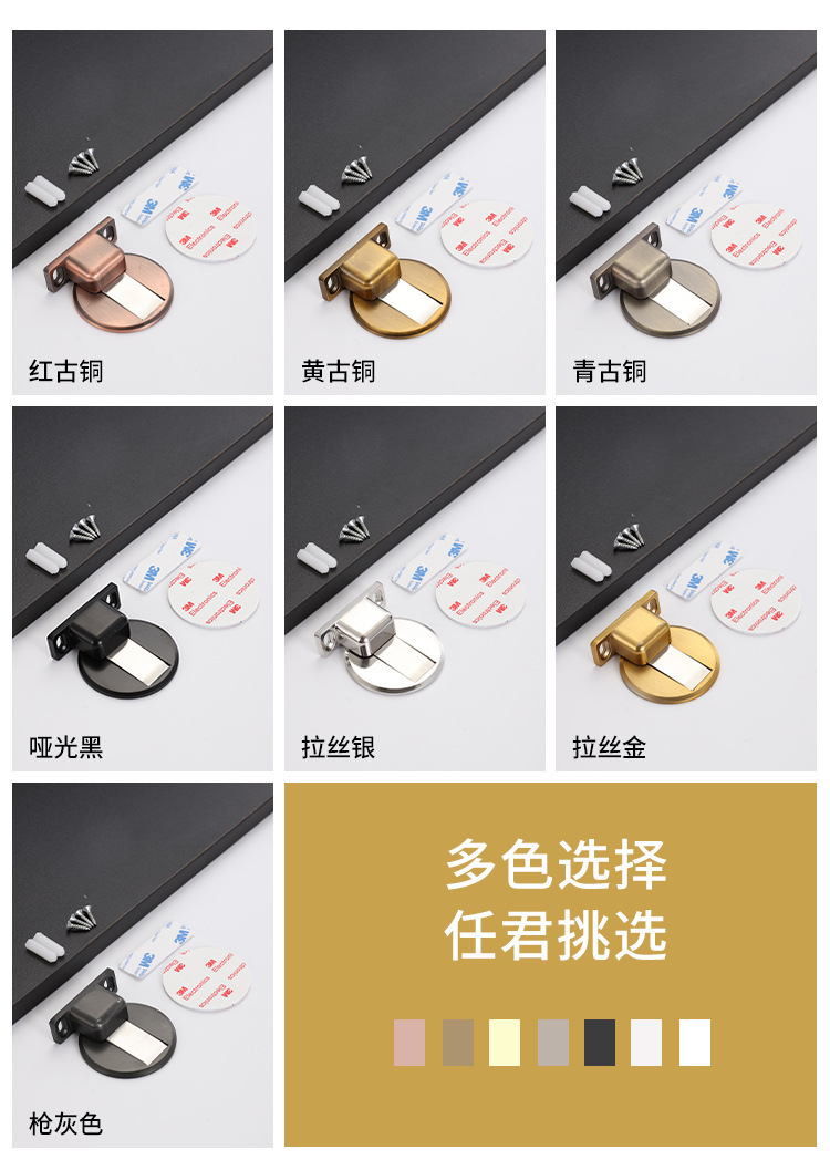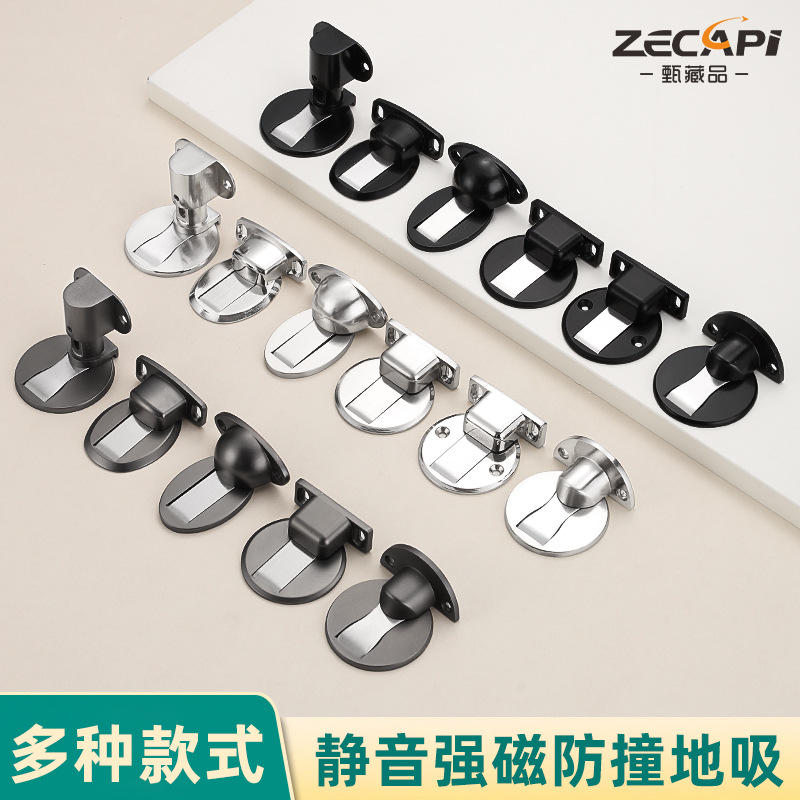 新款锌合金304免打孔可调节地吸静音隐形卧室卫生间强磁门挡门吸
