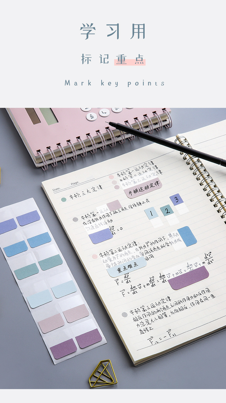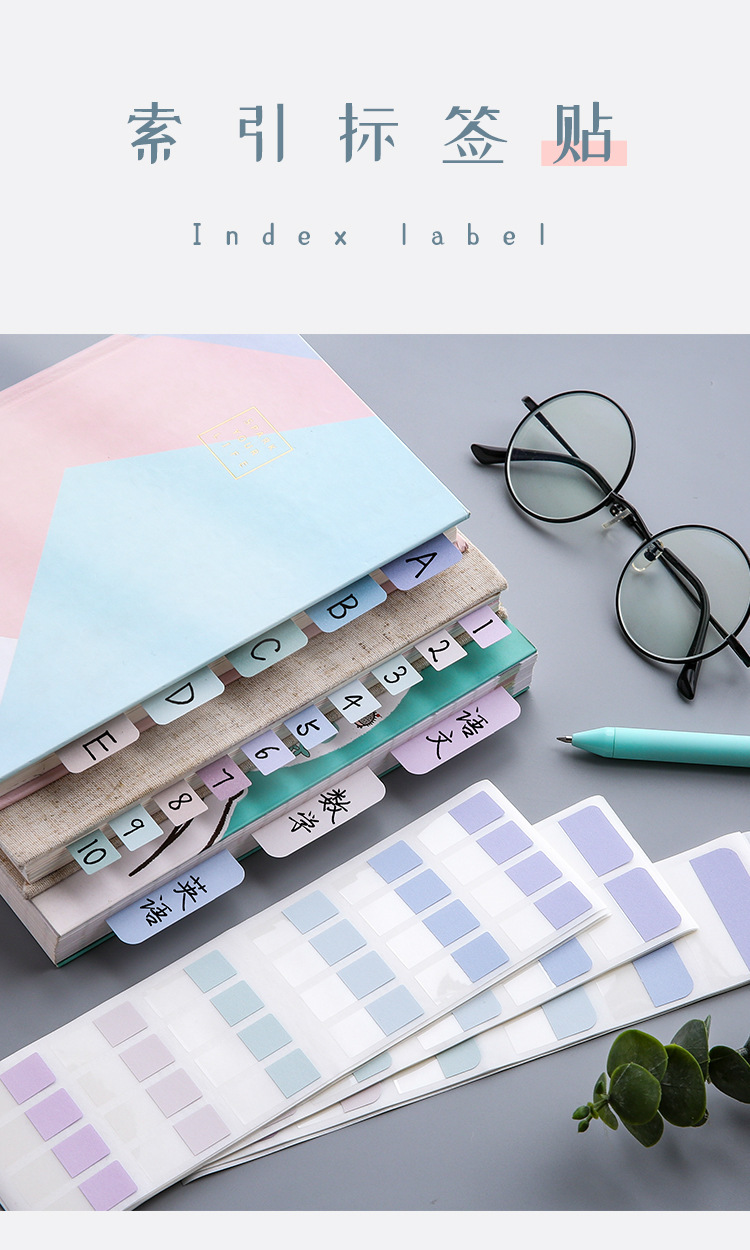 モランディのインデックスにラベルを貼るシールの付箋紙を貼る学生用はカラー蛍光を書くことができます。
