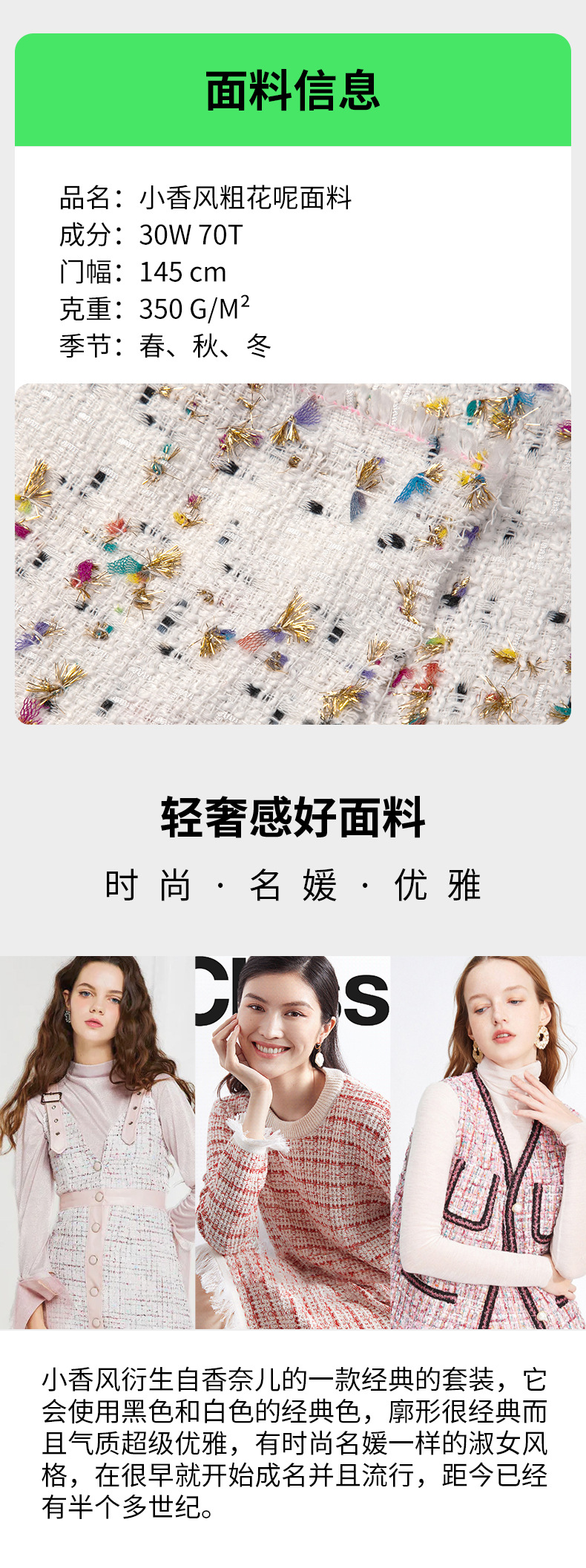 现代小香风面料布料粗纺面料编织服装面料布料秋冬面料服装外套