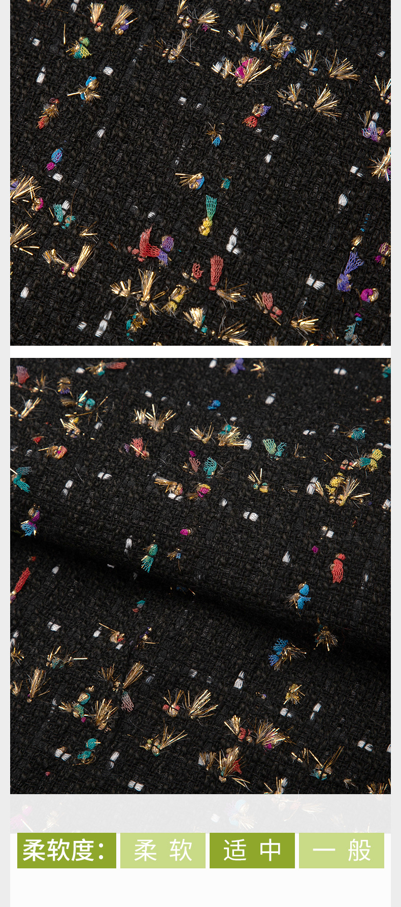 小香風生地粗織織り粗花は白黒格子金糸コートスカートセットバッグ布卸売り