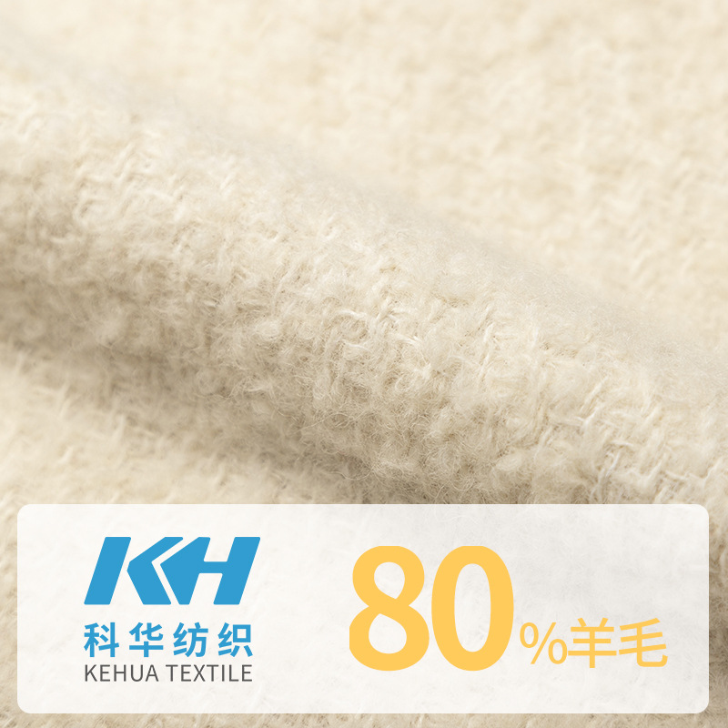2023秋冬粗纺编织粗花呢小香风面料素色梭织羊绒毛呢套装外套布料