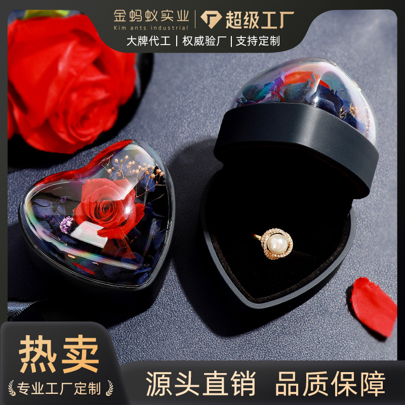 創意insバレンタインデー永生花礼箱指輪ネックレス箱アクセサリー包装箱バラアクセサリー箱現物