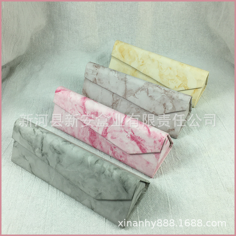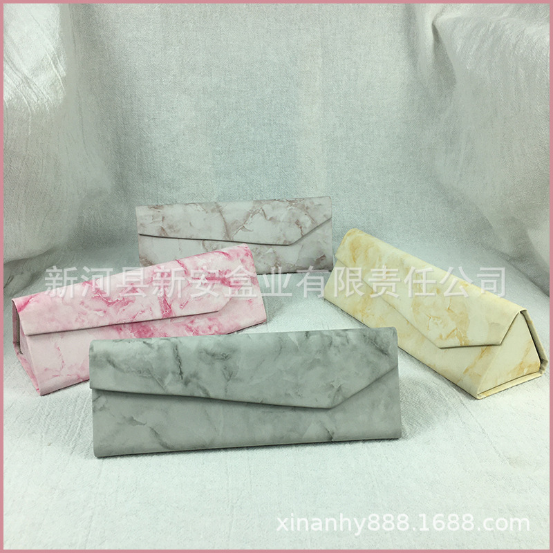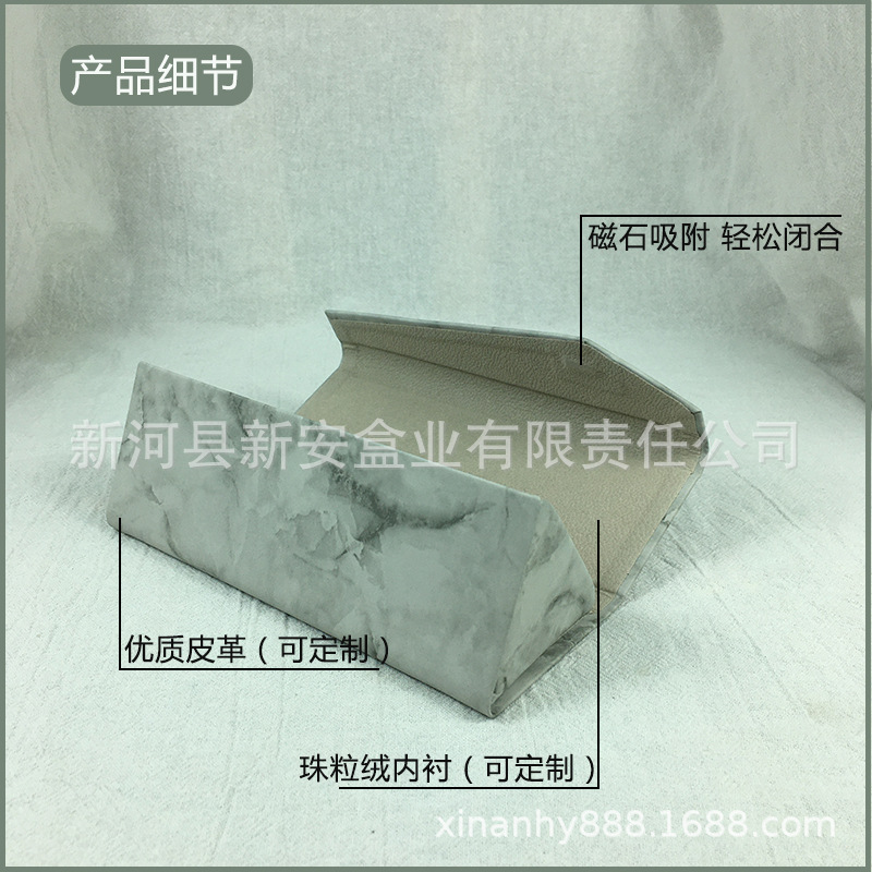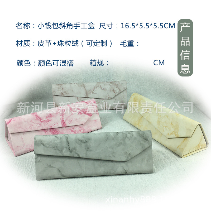 手工三角折叠眼镜盒批发皮质十字纹荔枝纹墨镜太阳镜眼镜盒出售