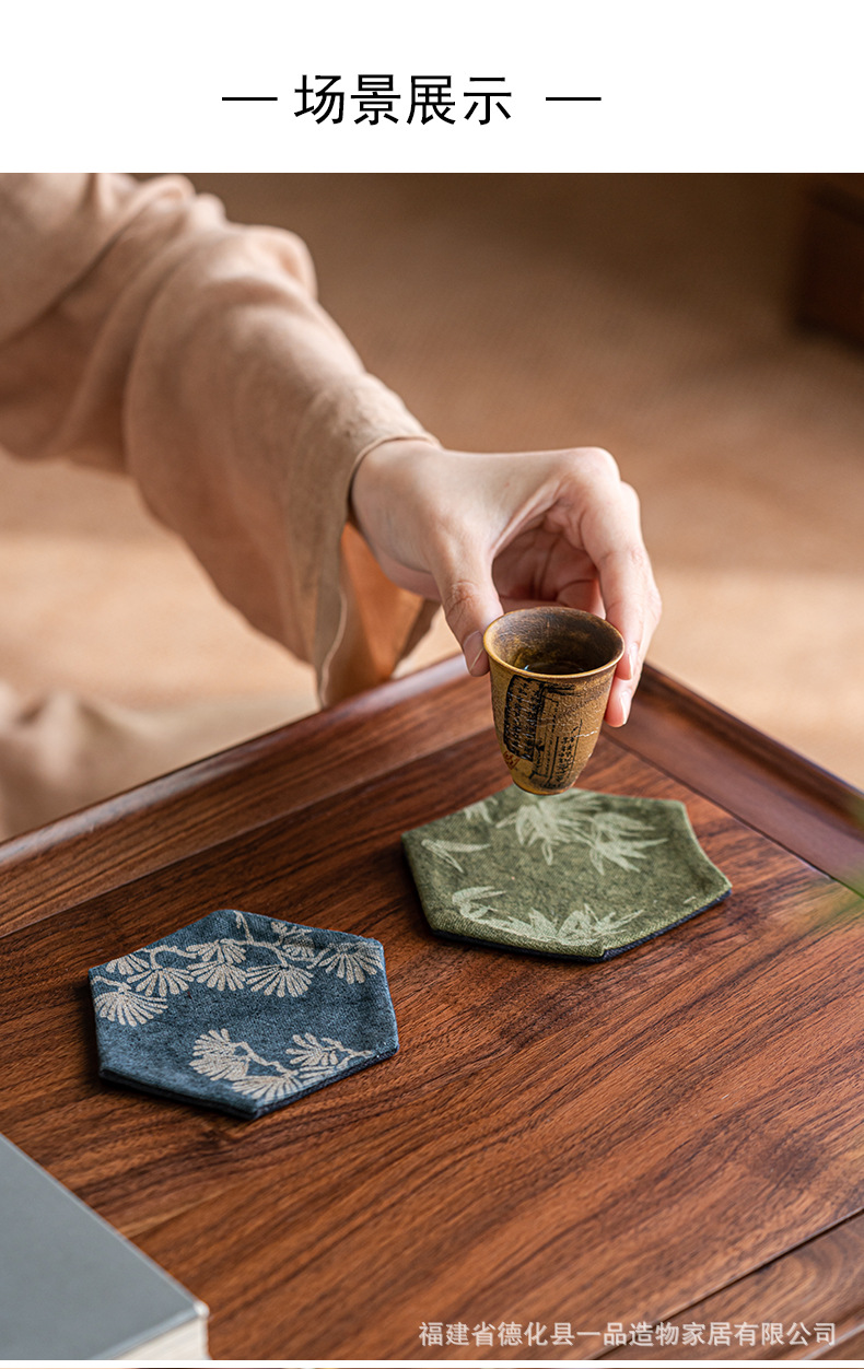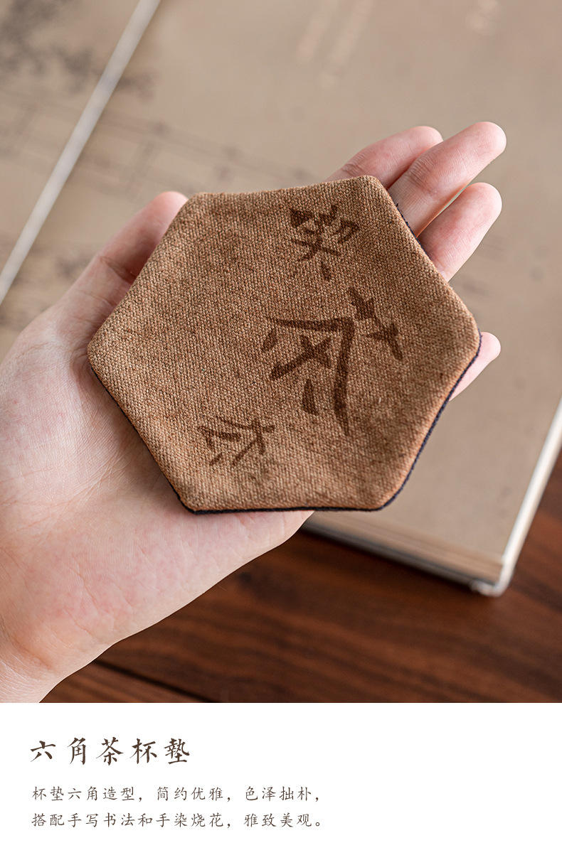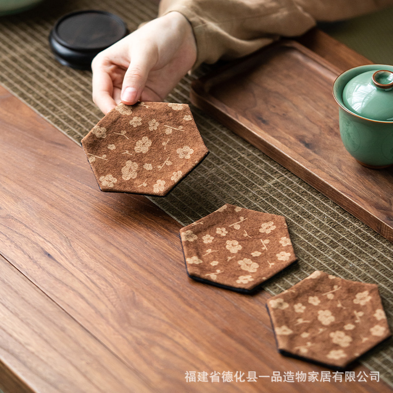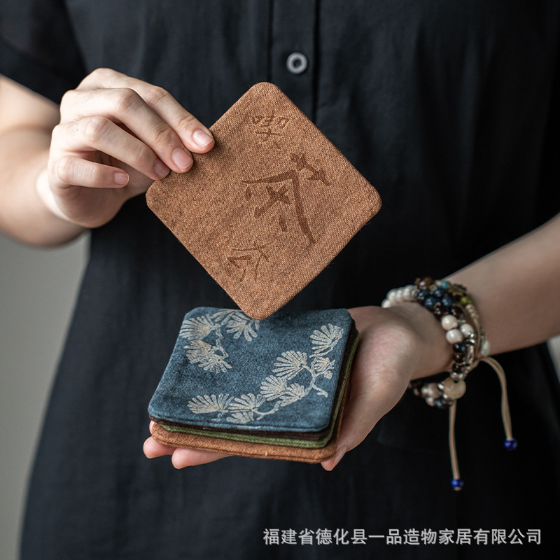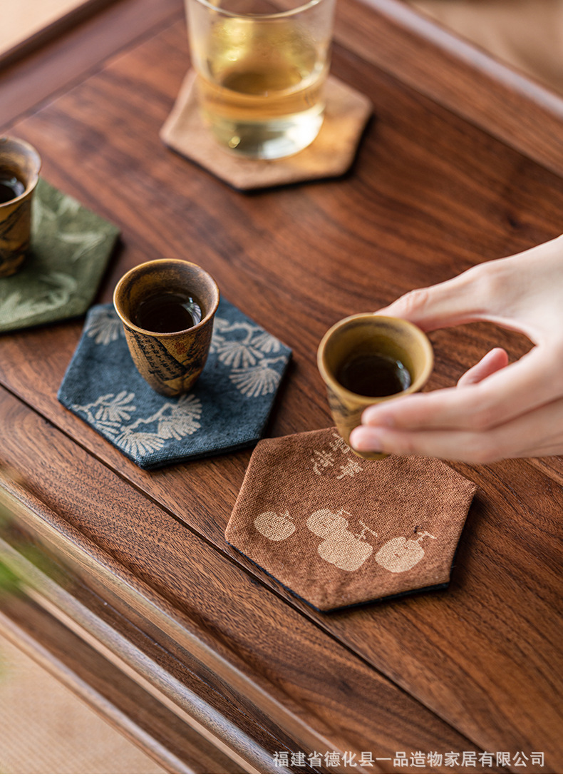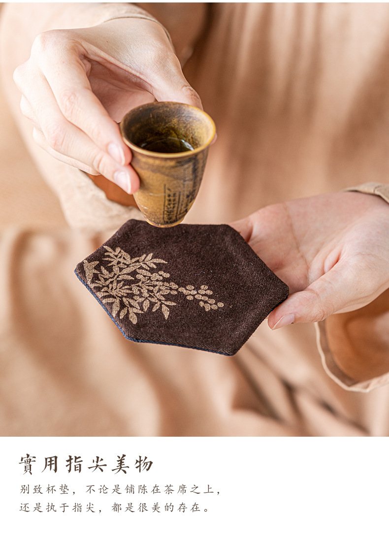 中国式手刺繍ラミー麻カップマットクリエイティブカップ断熱マットレトロ茶道布芸茶器部品
