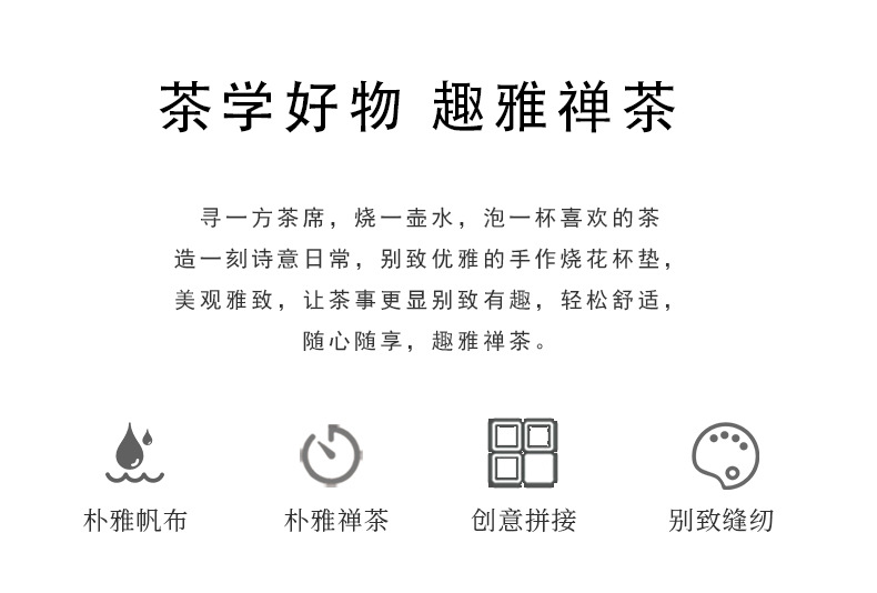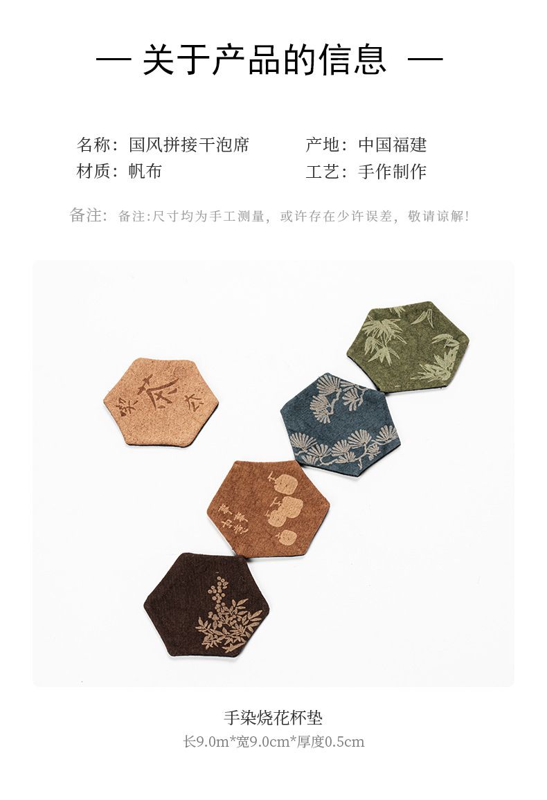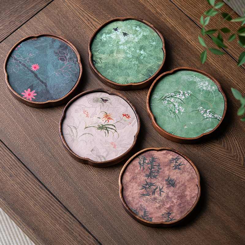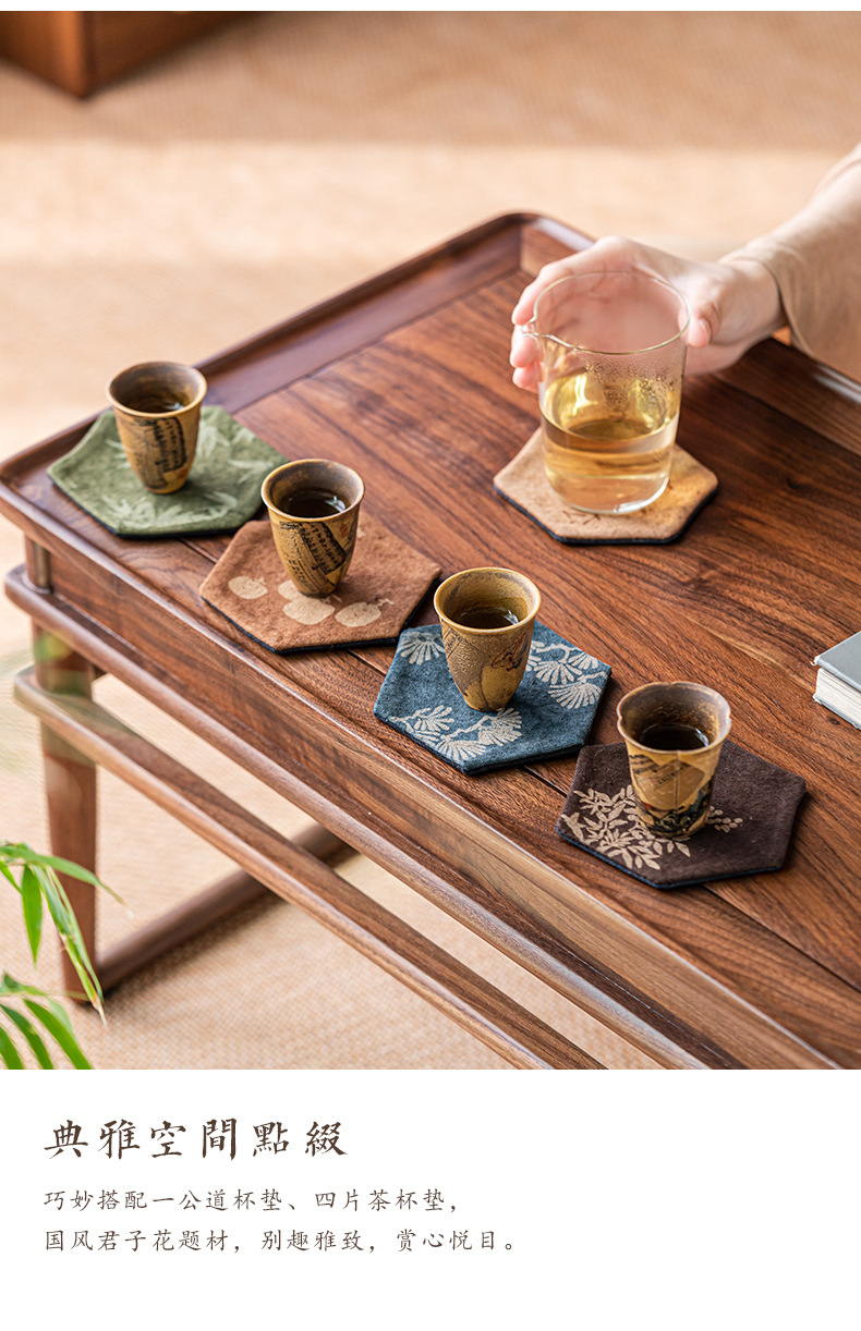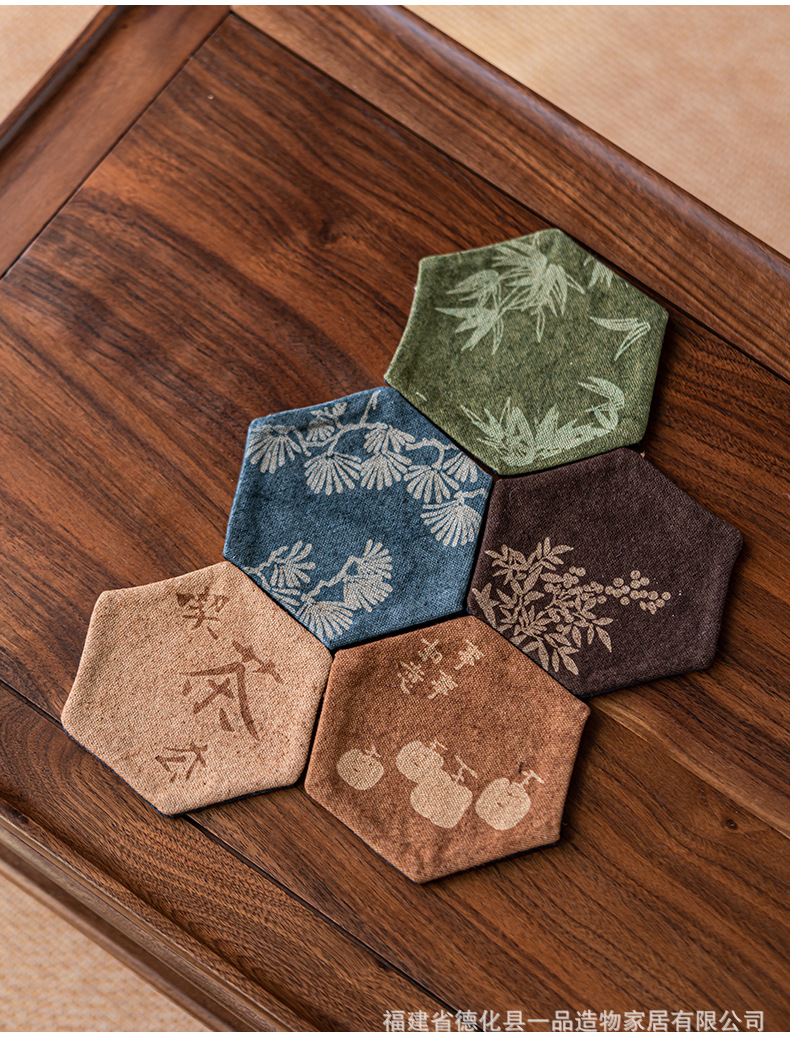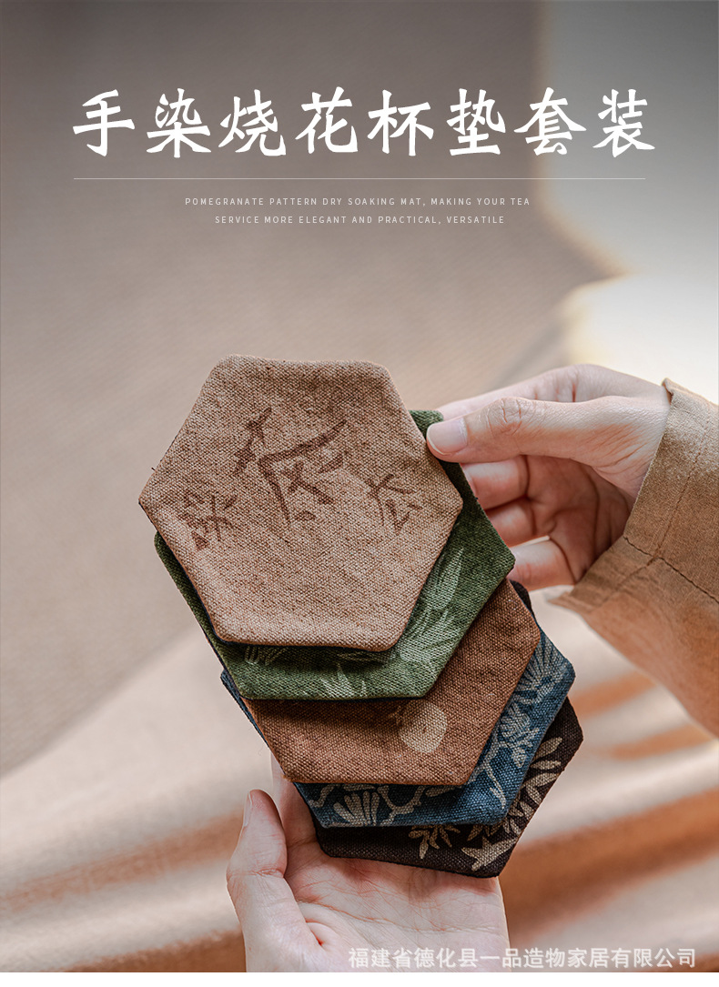 中国式手刺繍ラミー麻カップマットクリエイティブカップ断熱マットレトロ茶道布芸茶器部品
