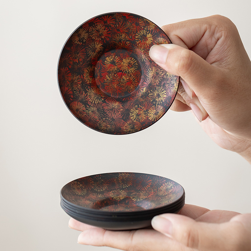 新商品の大漆の古い鉄芸の茶の杯は家庭用の工夫の茶器の手の仕切りを敷きます。