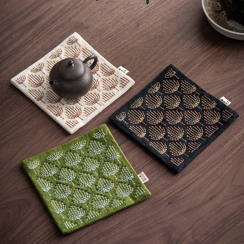 创意中式刺子绣蒲公英壶垫杯垫家用帆布茶席小垫子隔热垫茶道配件