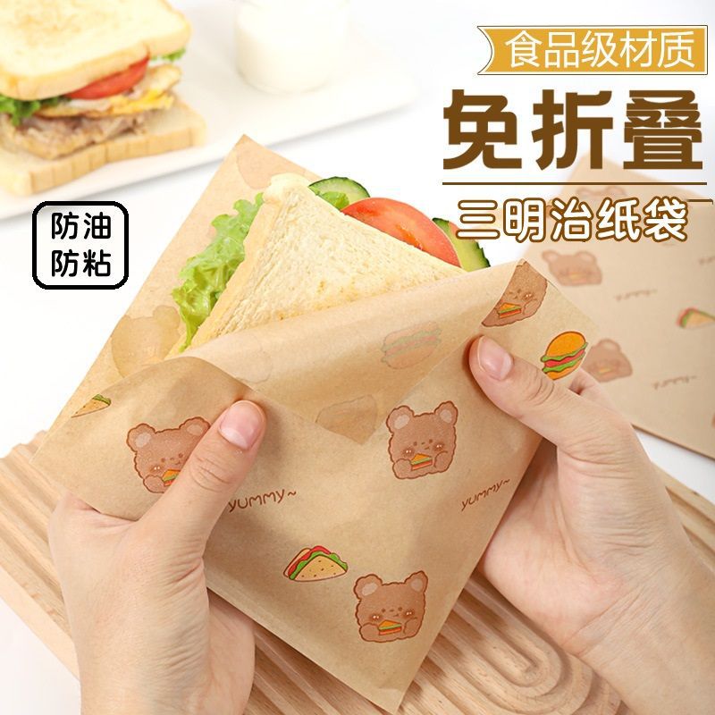 使い捨てサンドイッチ包装紙耐油紙袋朝食トーストバーガー三角紙袋パンケーキ包装袋