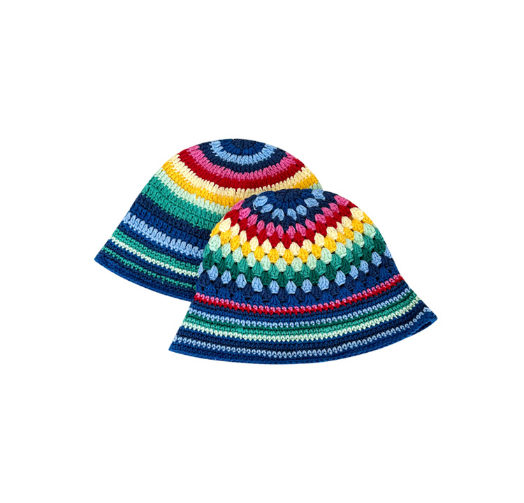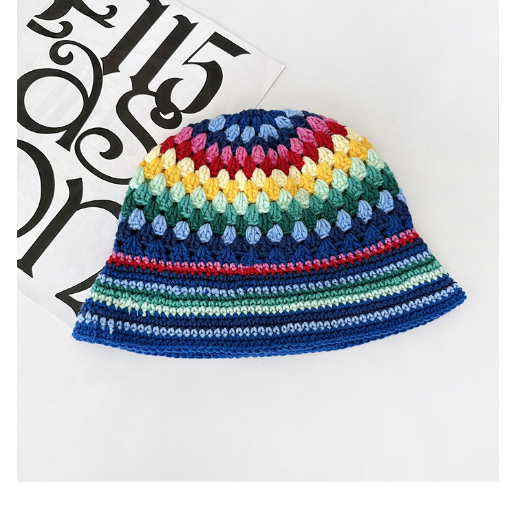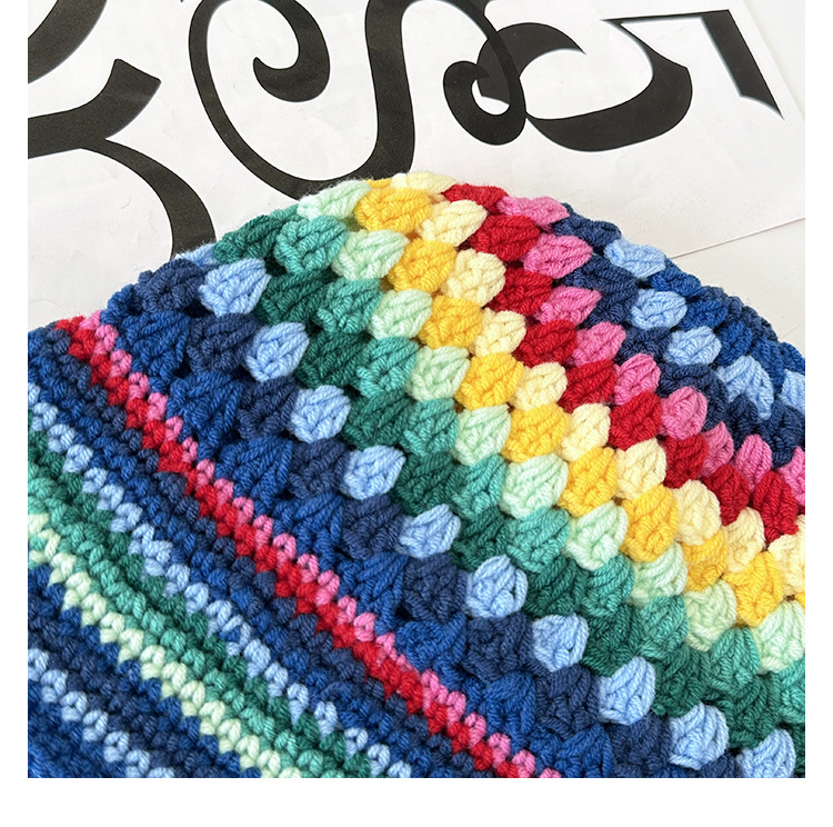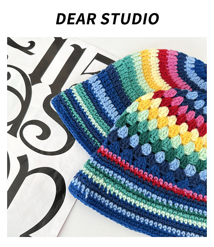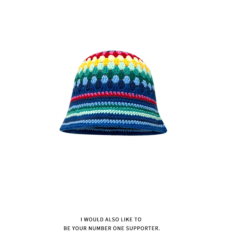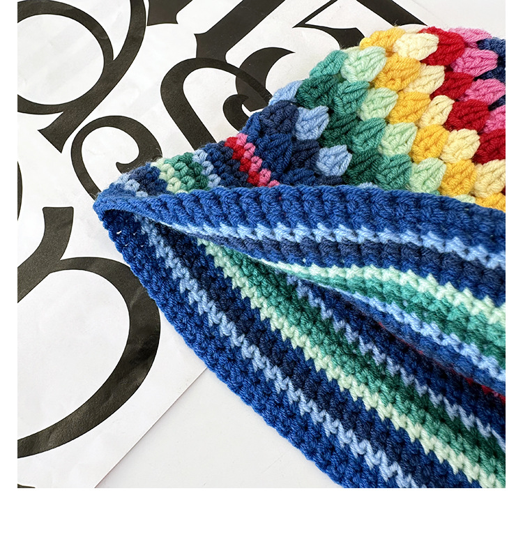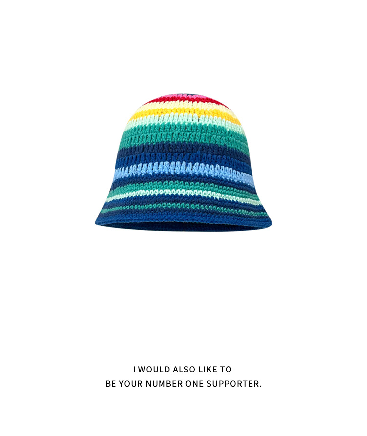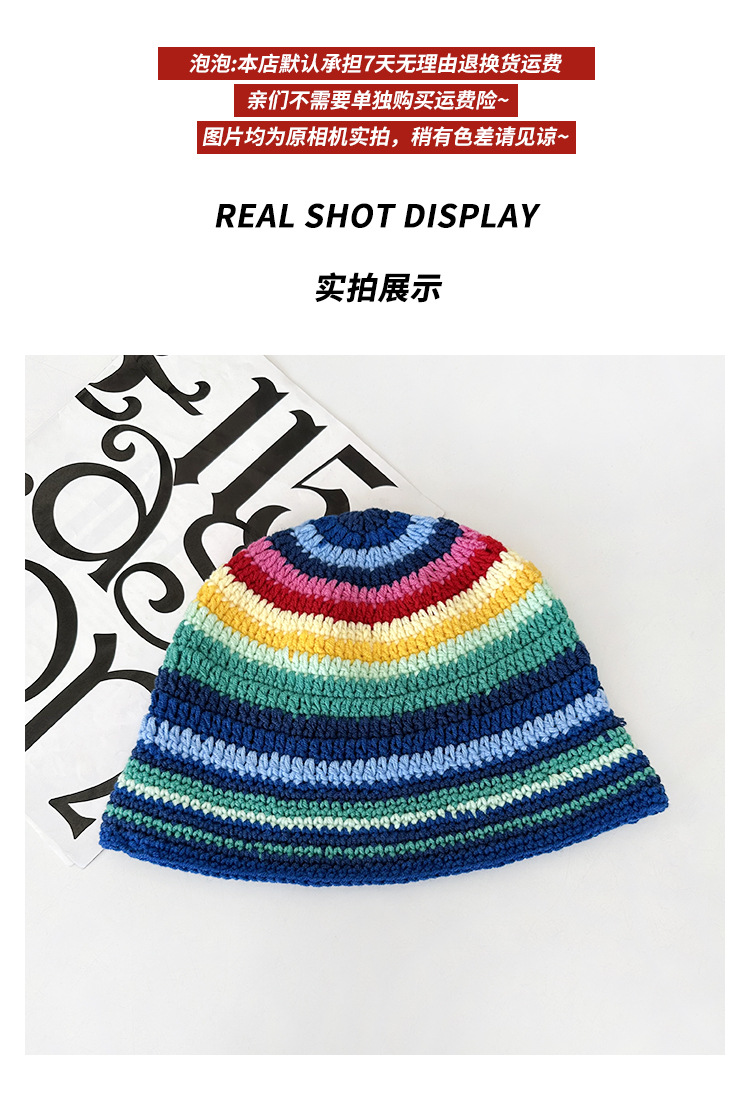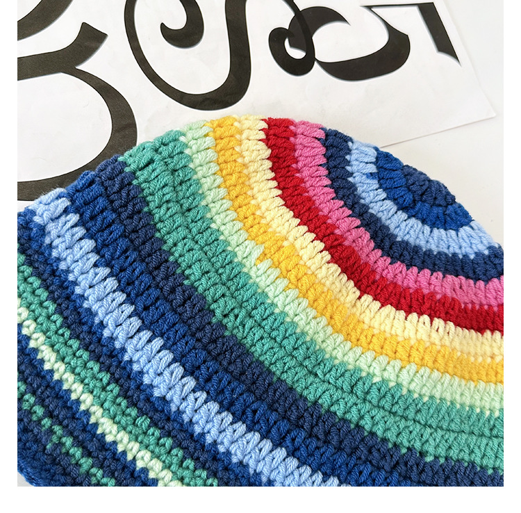 ドーパミン風カラーストライプのニット漁師帽の子供は秋冬に白いです。