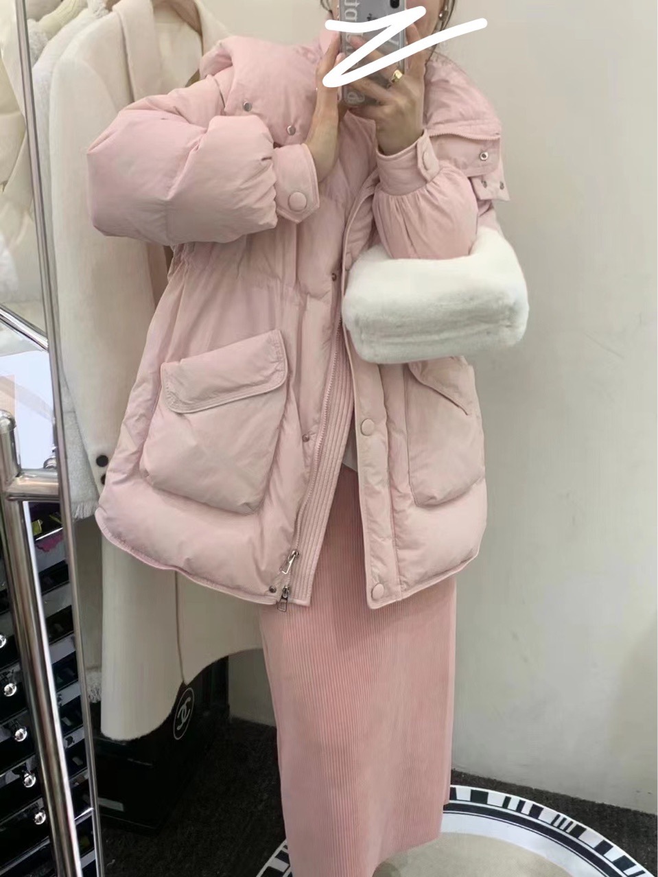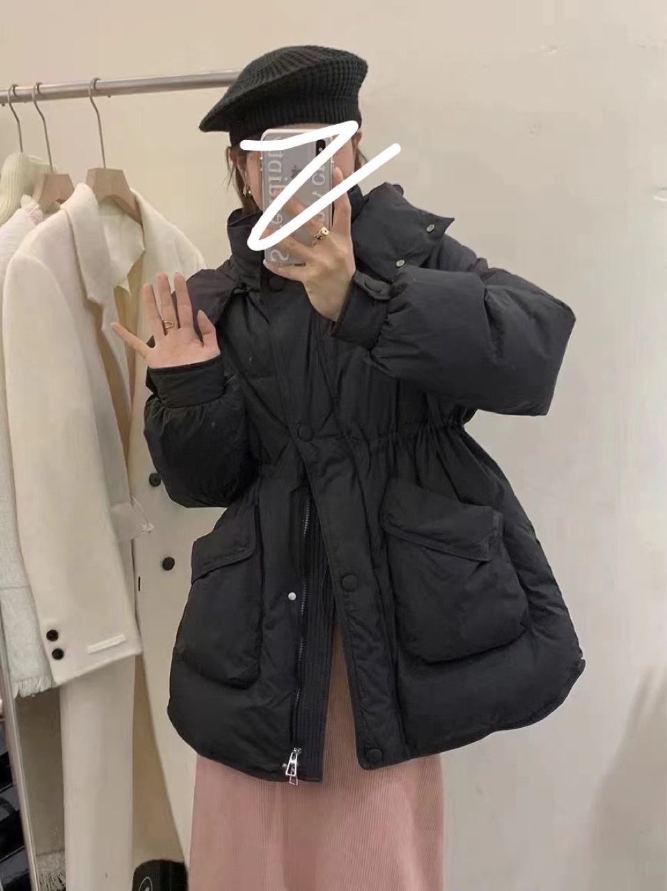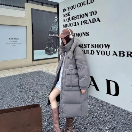 大泡芙2025新款冬季白鸭绒羽绒服女宽松时尚韩版百搭中长款外套