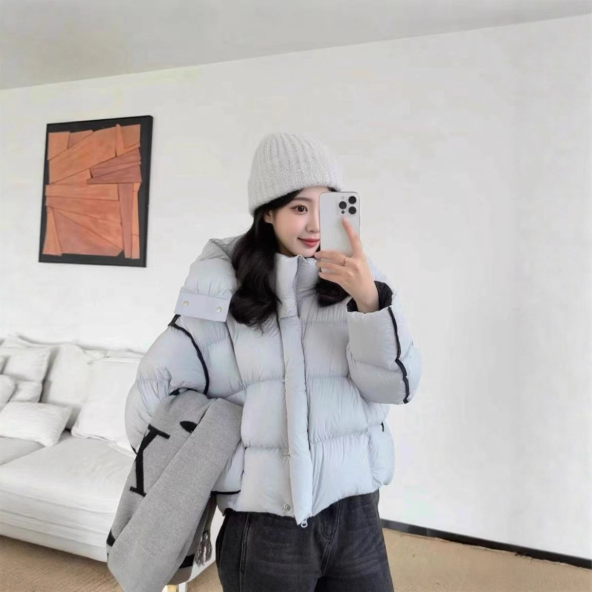 2025冬季新款泡芙连帽羽绒服女短款宽松轻盈白鸭绒面包服外套潮