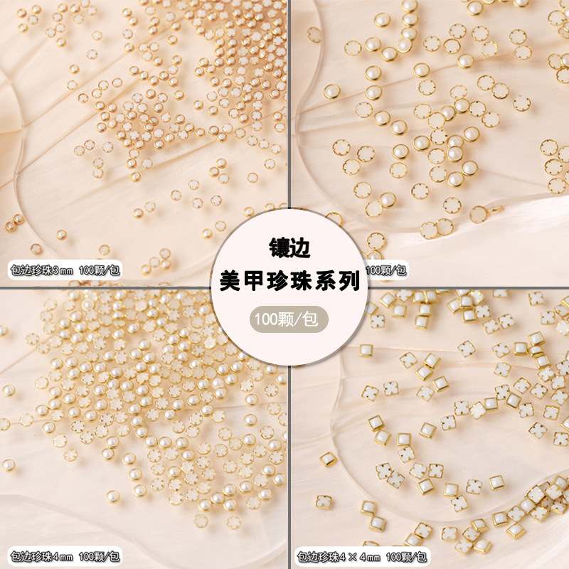日系ネイルバッグ縁真珠金辺水ドリル装飾平底ドリルネイルアクセサリー装飾アクセサリー縁真珠