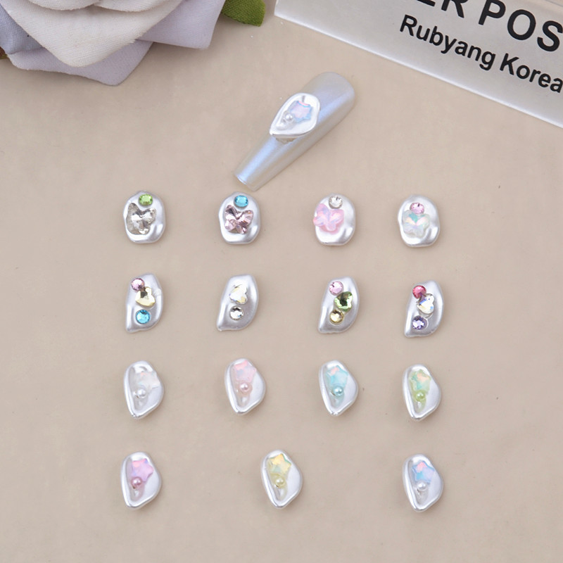 ネットの赤い爆発の超フラッシュのバロックの真珠はダイヤモンドのジルコンのネイルアクセサリーの合金の愛の蝶の爪の装飾を入れます。