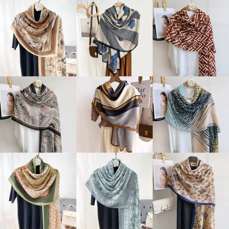 春の新型百合大腰果90大方巾シルクタオル卸売り古典的なレトロなプリントマフラーscf