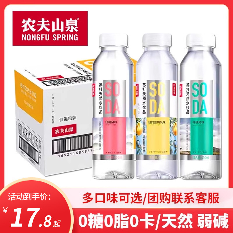 农夫山泉苏打水天然水饮品410ml*6瓶量贩装无糖饮料白桃柠檬风味
