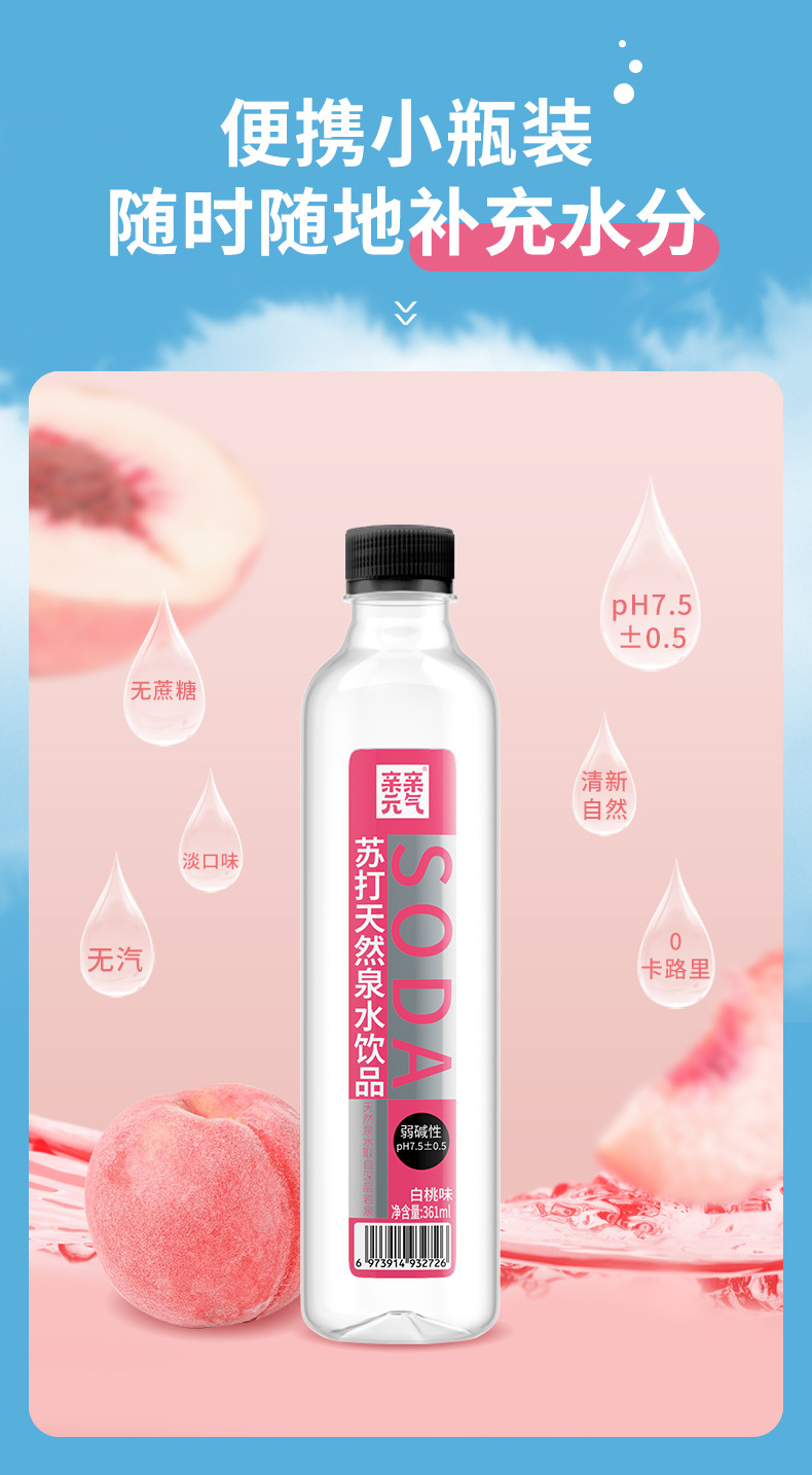 元気フルーツ味ソーダ無蒸気無糖妊婦専用小瓶入り飲料白桃味飲料水箱卸売り