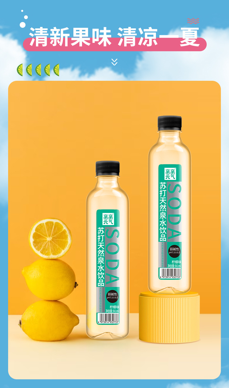 苏打水整箱24瓶350ml纯原味柠檬水无气泡0卡弱碱性非矿泉饮料