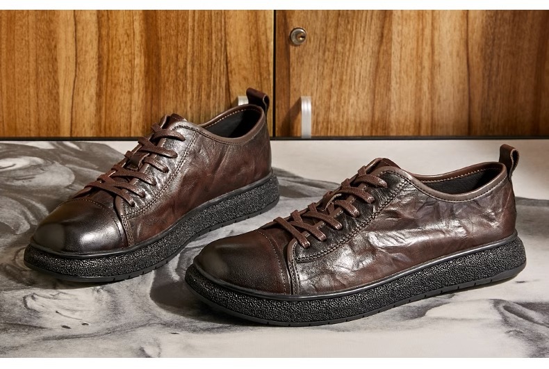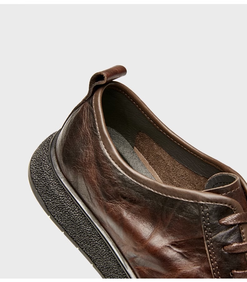 铂巍秋季新款商务休闲皮鞋简约透气男士大头鞋舒适真皮厚底德比鞋