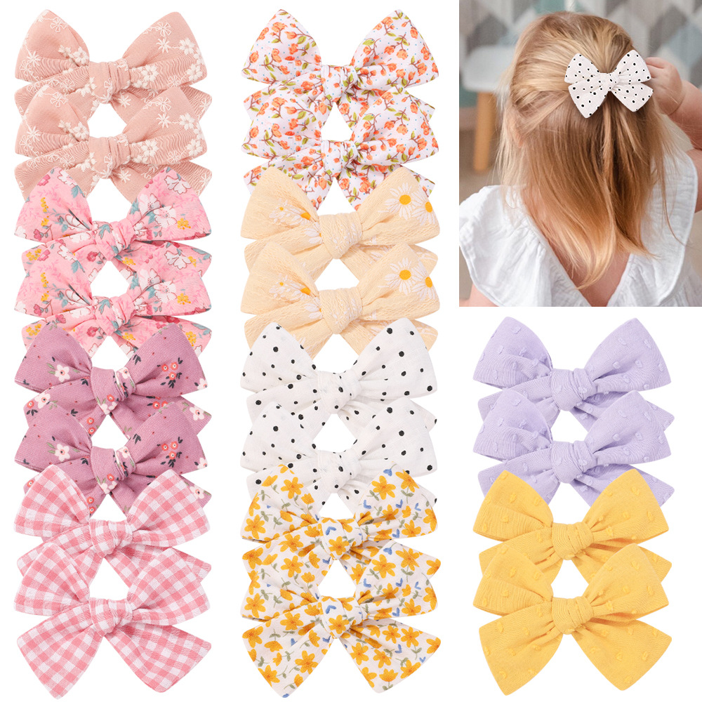【名称】欧美跨境儿童蝴蝶结发夹不伤发包夹布料手工发饰宝宝头饰发卡3409