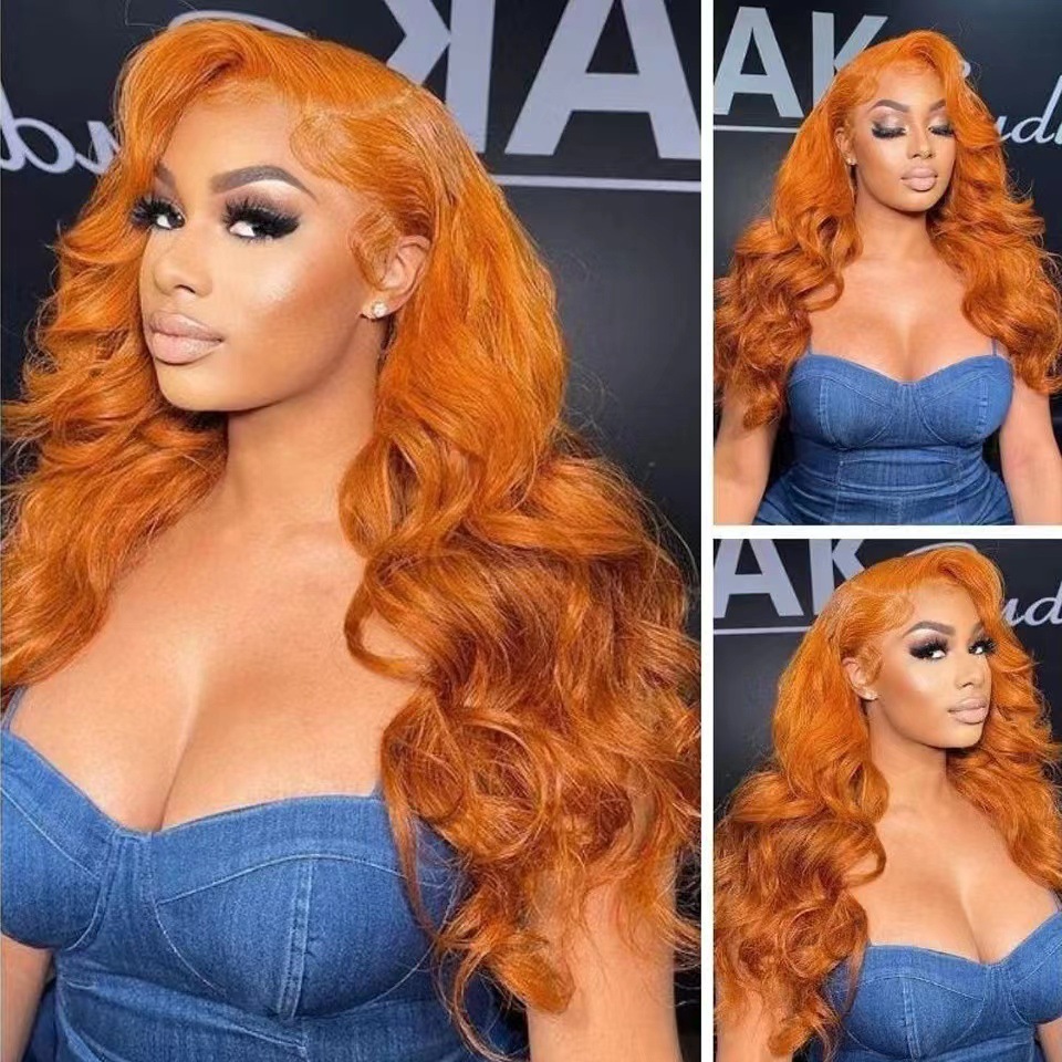アフリカの小さい巻きの長い髪のレースのかつらは欧米の新商品の速売通の長い髪の毛のオレンジ色のレースのかつらの頭のカバーを売ります。