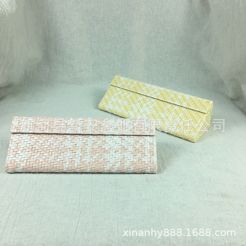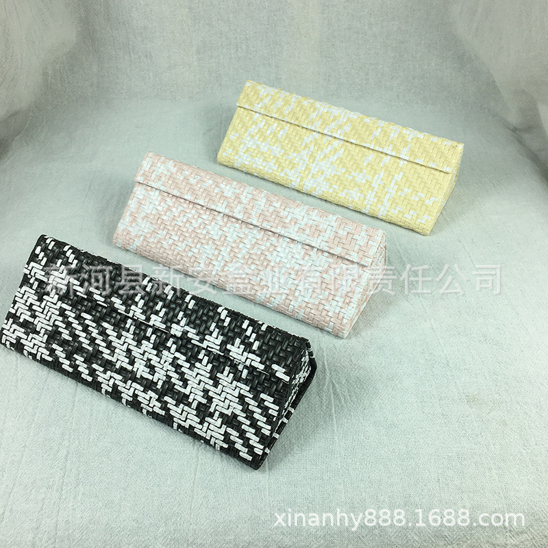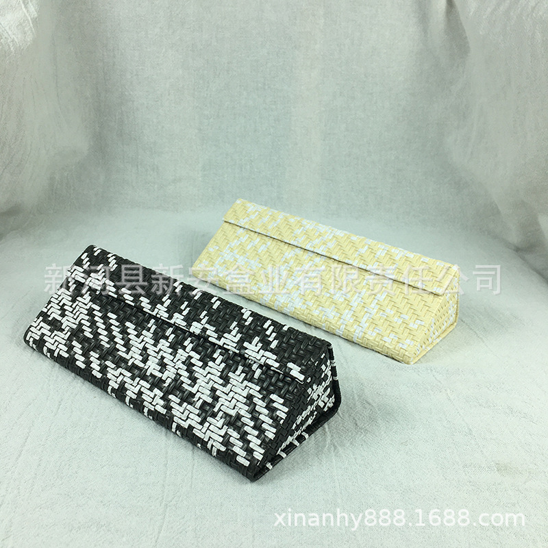 手工三角折叠眼镜盒批发皮质十字纹荔枝纹墨镜太阳镜眼镜盒出售