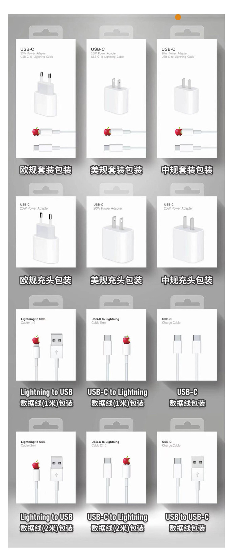 仕様 USB-C,Lightning - USB(1m) データ ケーブルの梱包箱,Lightning - USB(2m) データ ケーブルの梱包箱,USB - USB-C データ ケーブルの梱包箱,USB-C - Lightning (1m ) データ ケーブル パッケージ ボックス,USB-C - Lightning (2m ) データ ケーブル パッケージ ボックス