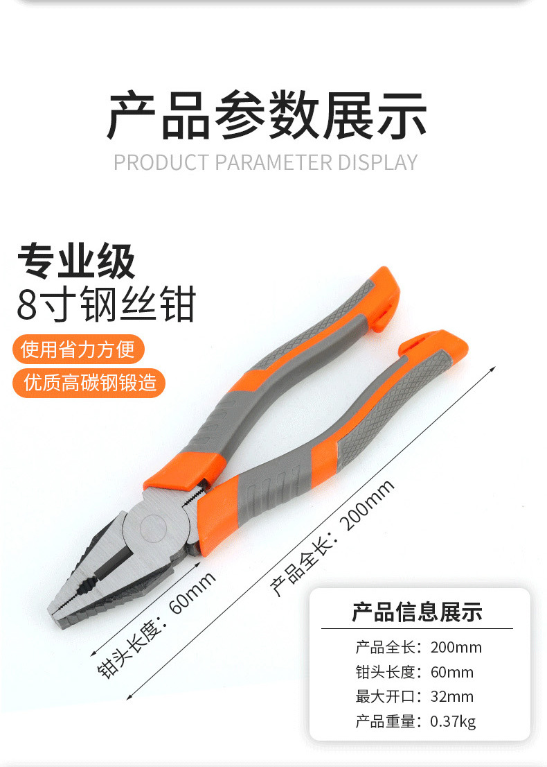 多功能高硬度钳子钢丝钳斜口钳工业级省力钳拧卸绕线万能电工专用