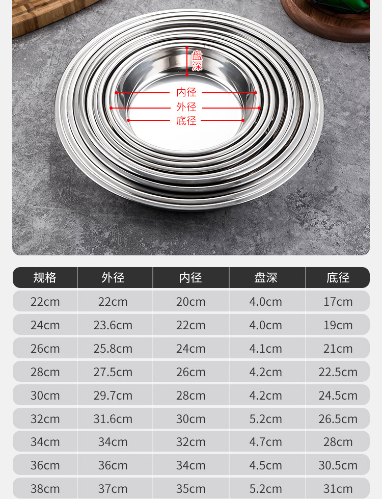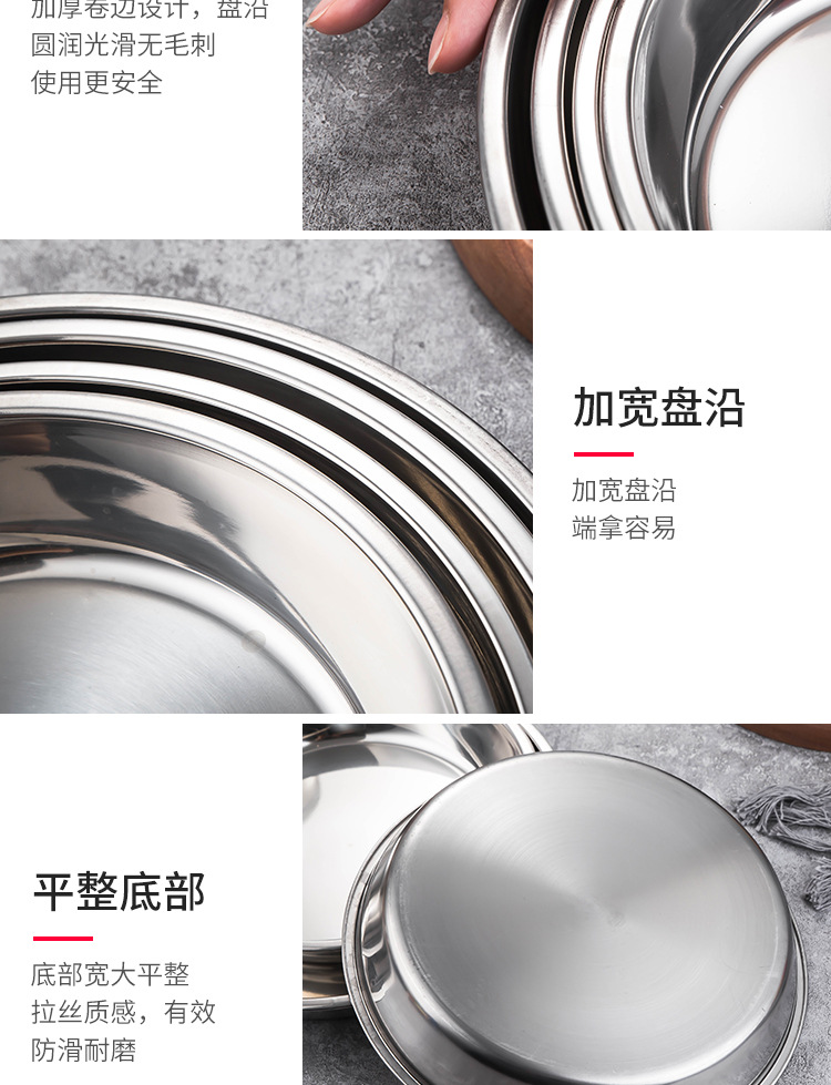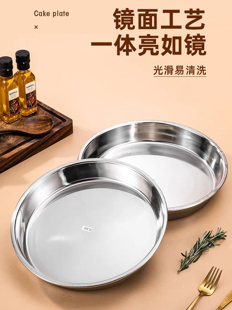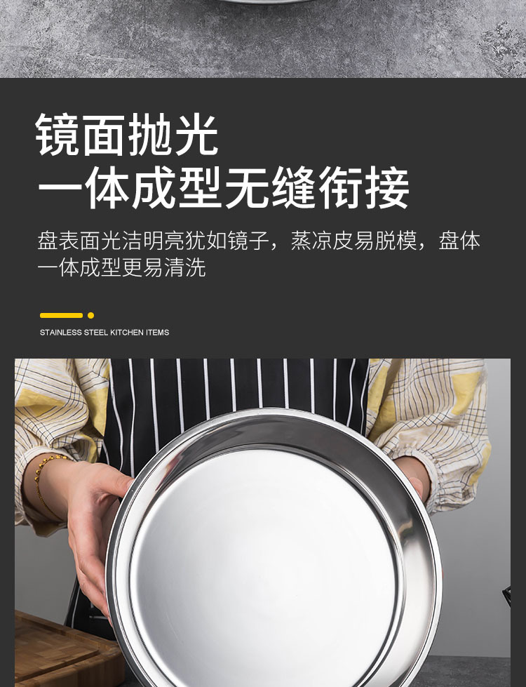 316不锈钢圆盘家用浅盘凉皮盘蒸盘平底圆形托盘304菜盘碟子大盘子
