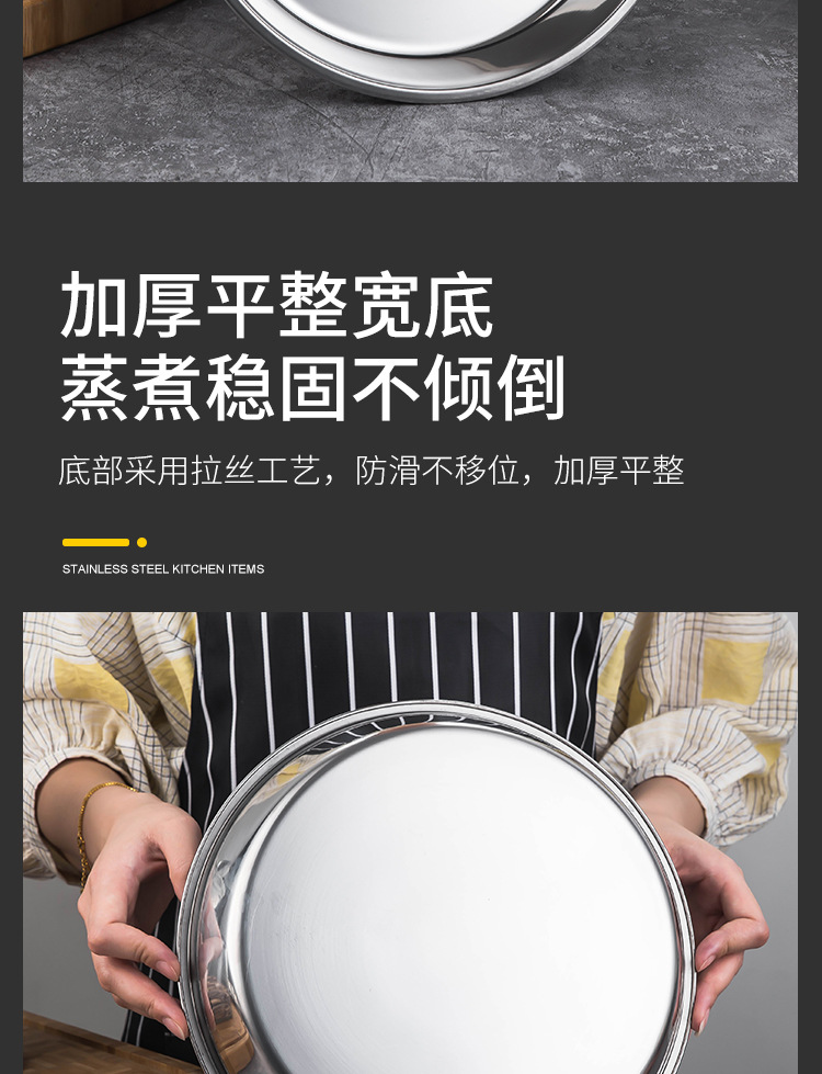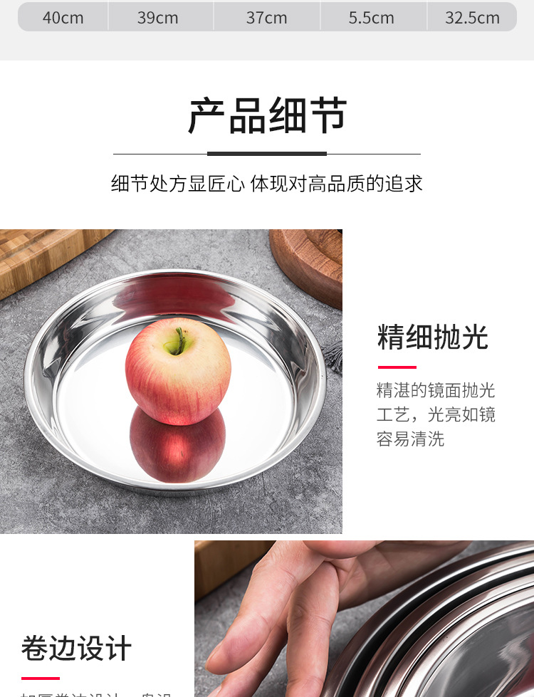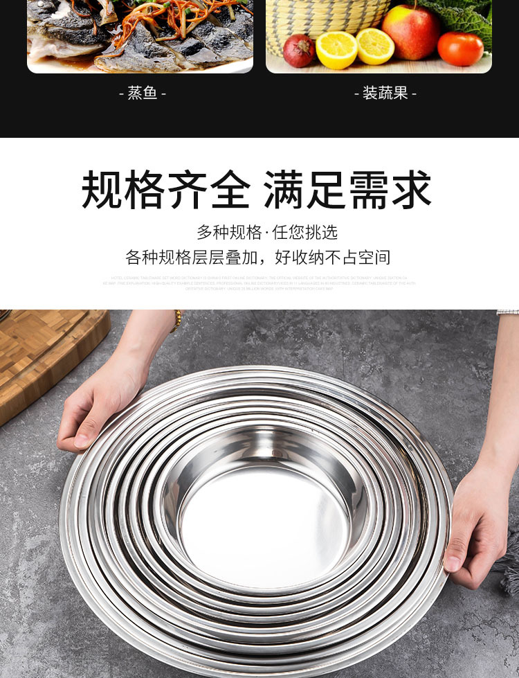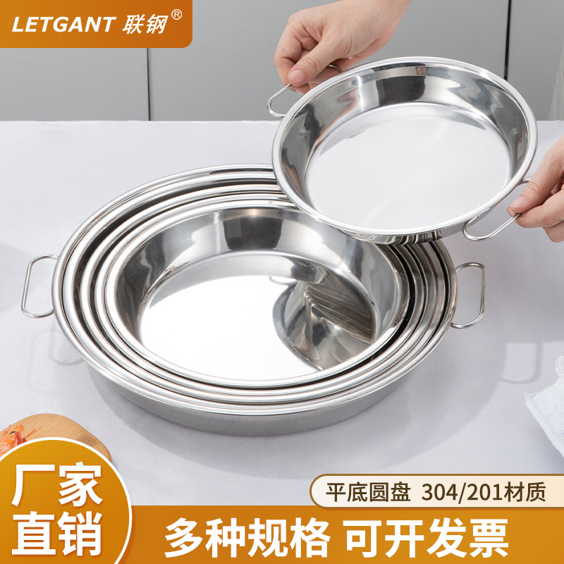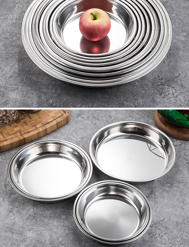 316不锈钢圆盘家用浅盘凉皮盘蒸盘平底圆形托盘304菜盘碟子大盘子
