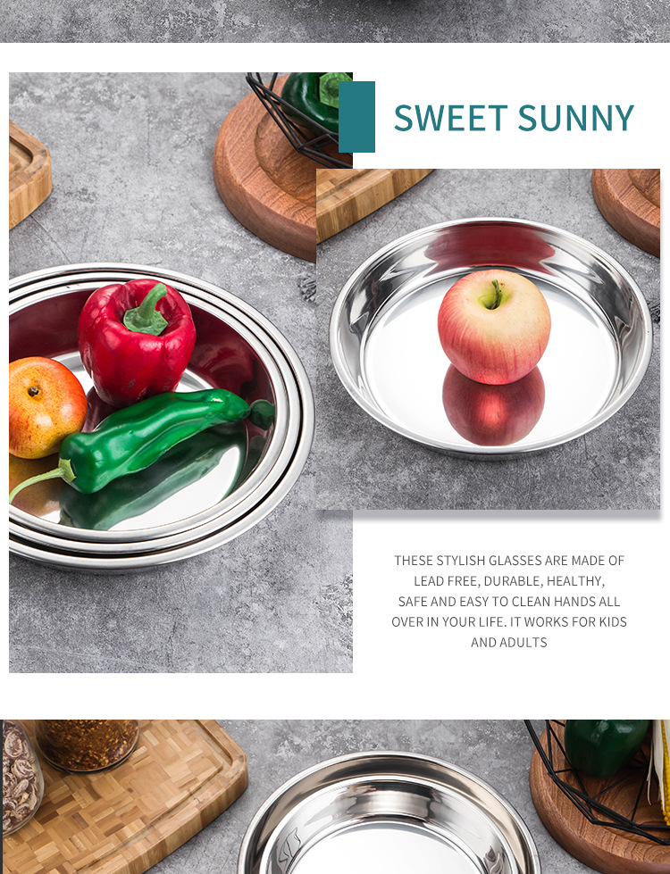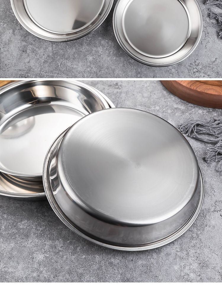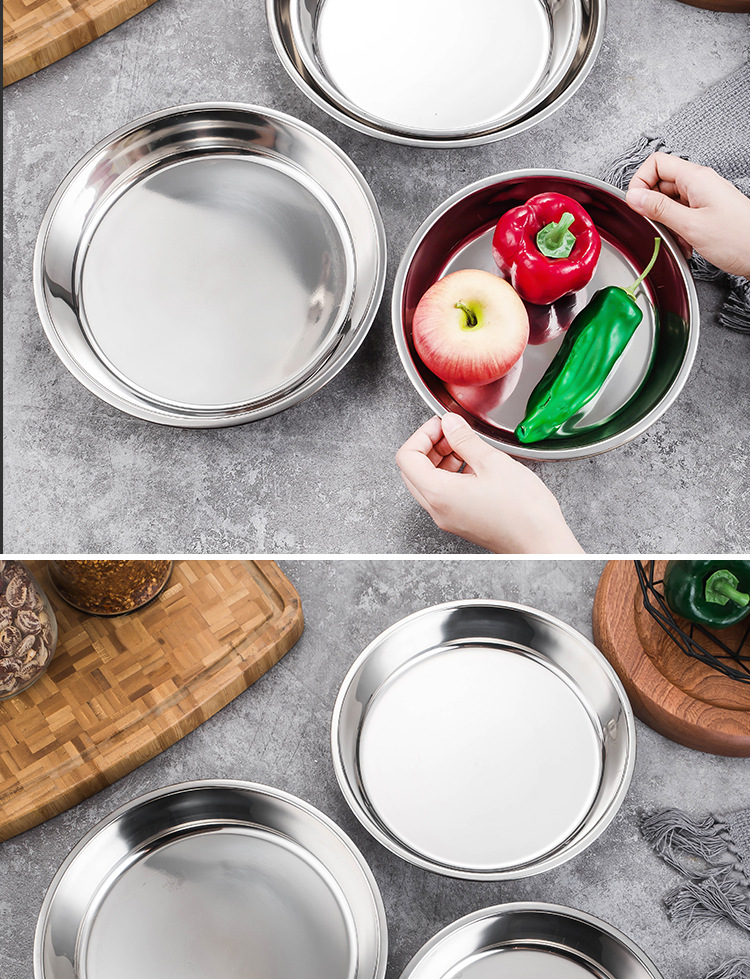 厚い304ステンレスの餅の皿の家庭用の冷たい皮のどらの平の丸い蒸し餅の皿の食堂の料理の皿の卸売り