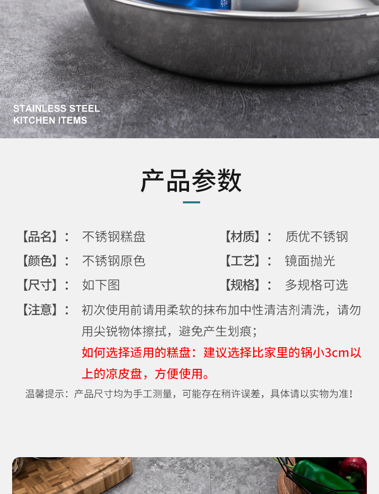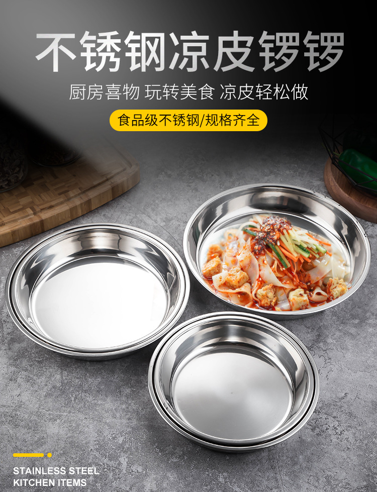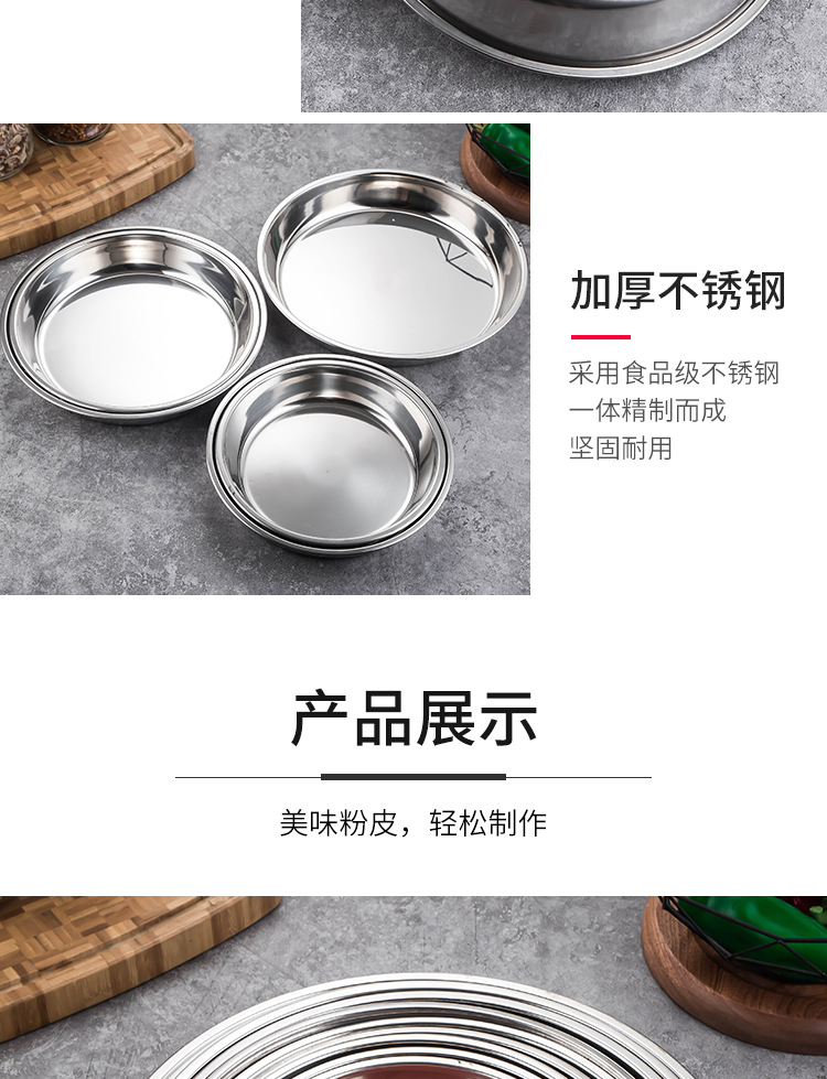 【特厚】凉皮どらステンレス皿腸粉皿餅皿蒸し皿皮羅羅は凉皮皿を作る