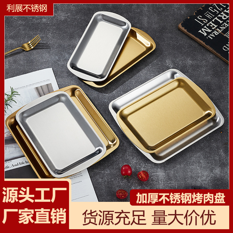 韓国式ステンレス角皿焼き肉皿厚手収納皿家庭用フラット長方形トレー