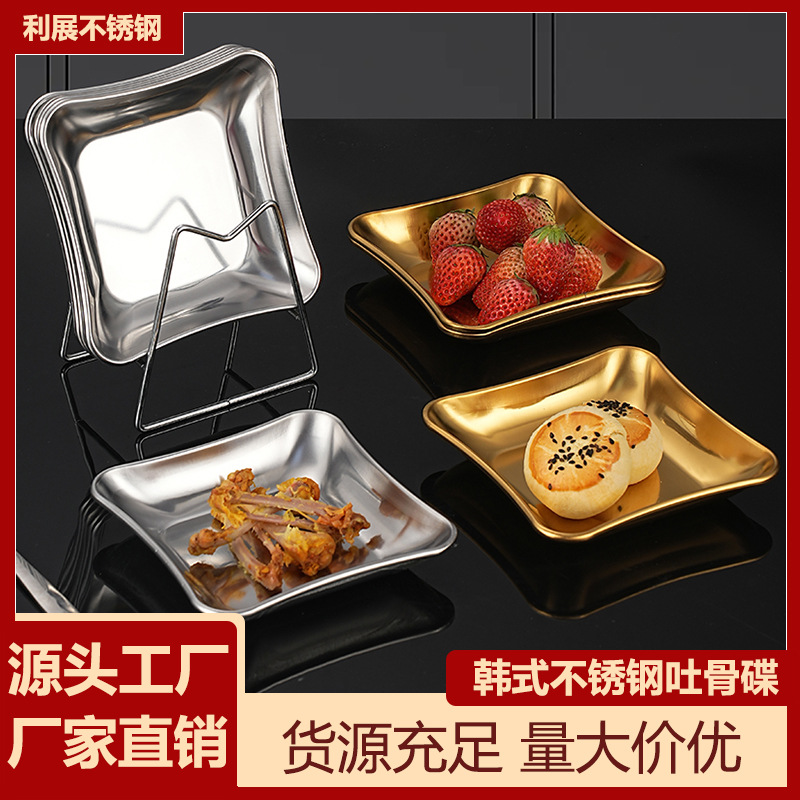 韓国式ステンレススナック皿家庭用ケーキ皿スナック果物皿食卓角型骨残渣小皿