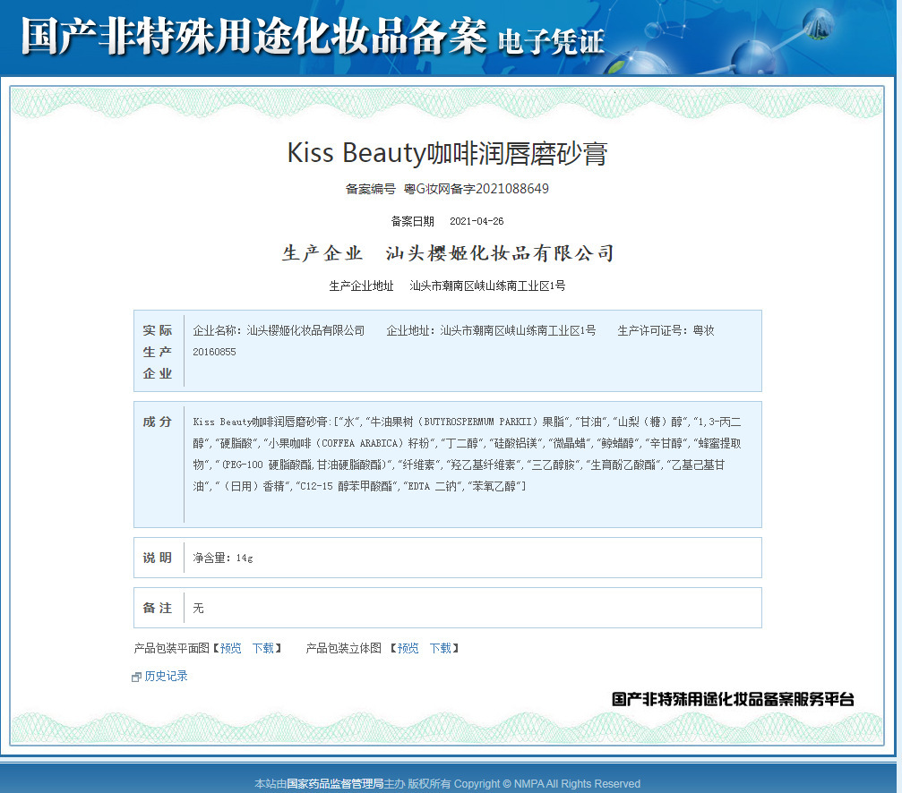 非特定化粧品届出証番号 広東g化粧ネットの予備字2021088649