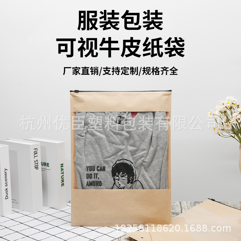ジッパー付き衣類袋、厚手のクラフト紙袋、Tシャツ長袖スウェットシャツ包装袋、インナーバッグ、エクスプレスバッグ