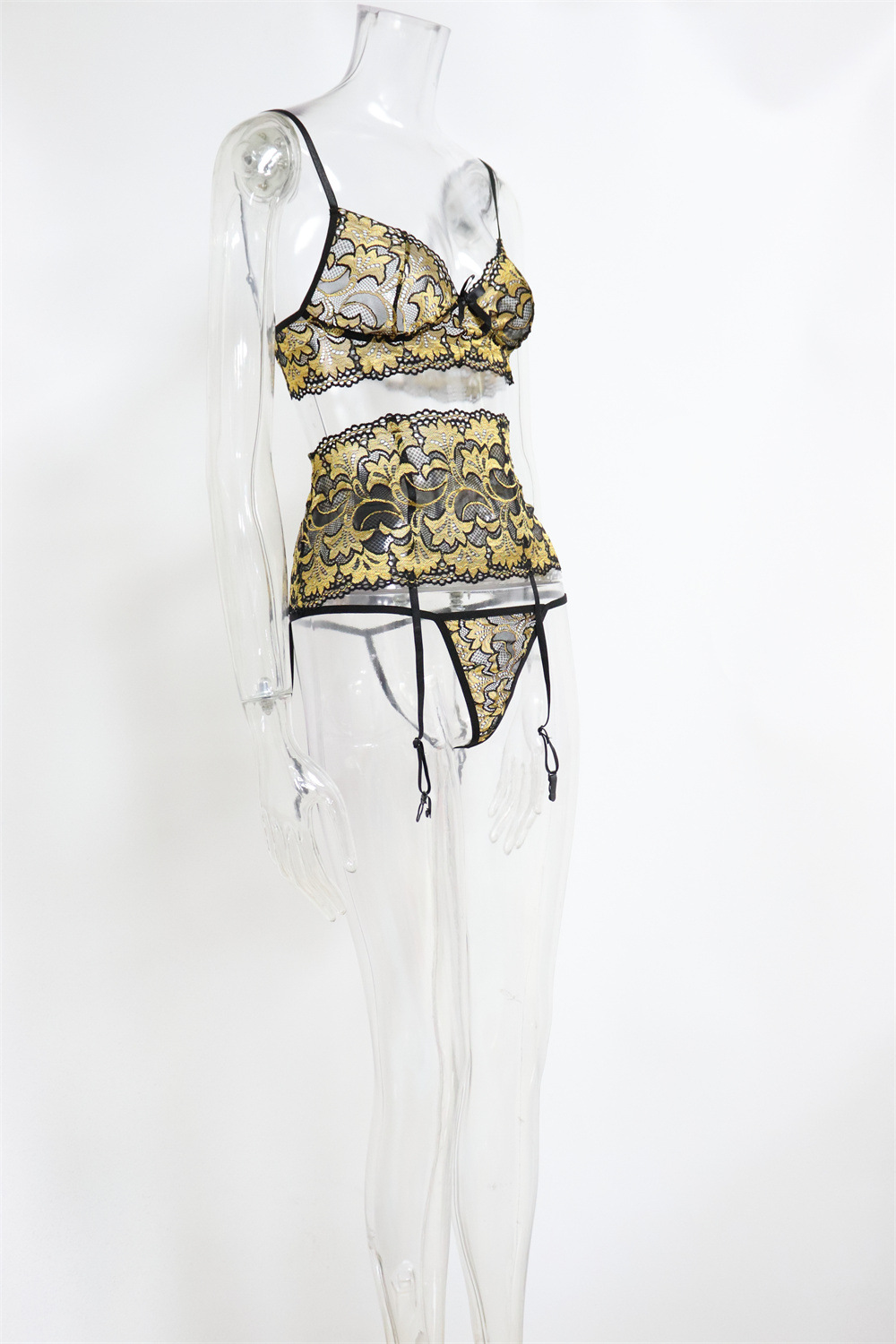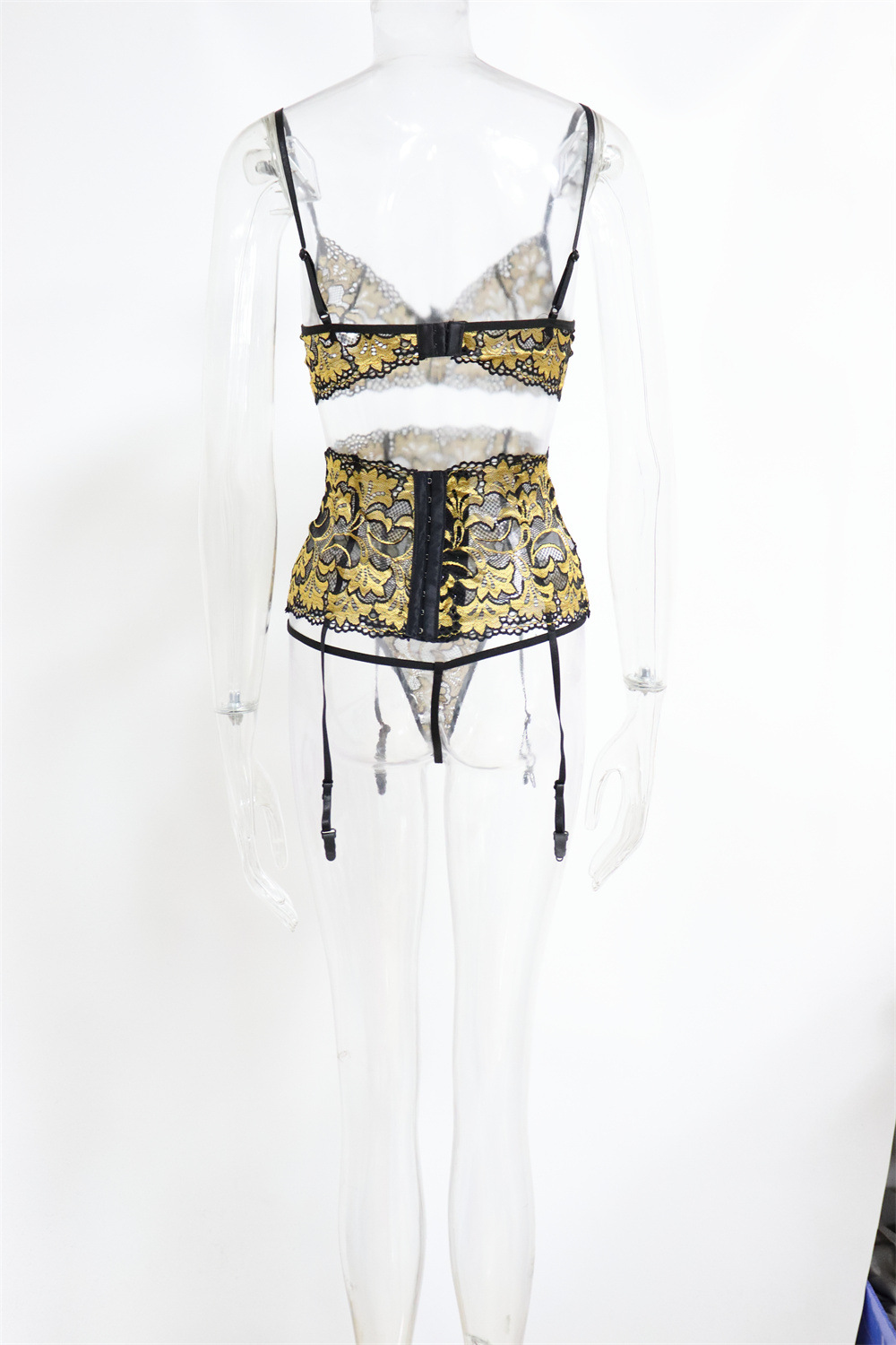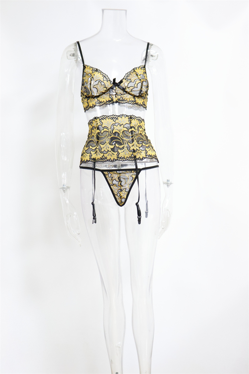 バックレスシースルー脱げないブラセットセクシーランジェリーランジェリーレース3点ビキニセットクロスボーダードロップシッピング
