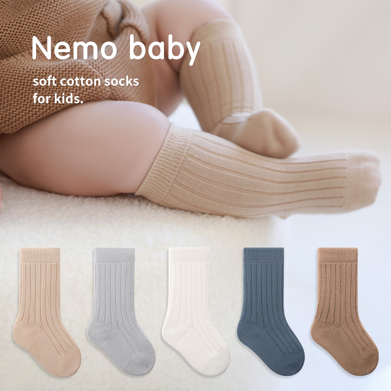 子供用靴下秋冬純色赤ちゃん綿靴下抗菌防臭無骨潮靴下男女子供赤ちゃん中筒松口靴下