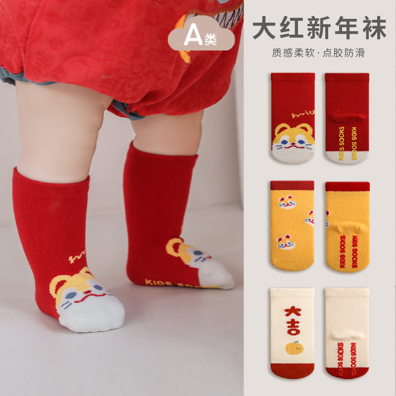 2023秋冬新品新生児赤ちゃん靴下日曜日百歳新年本命年赤ちゃん骨なし大赤靴下