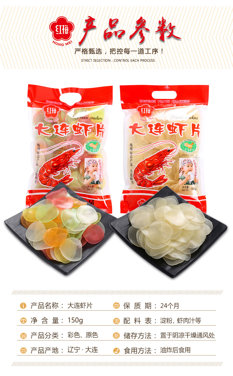 東北大連海老片カラー原色大包超大自己揚げ海老片新鮮乾燥生バラ500g