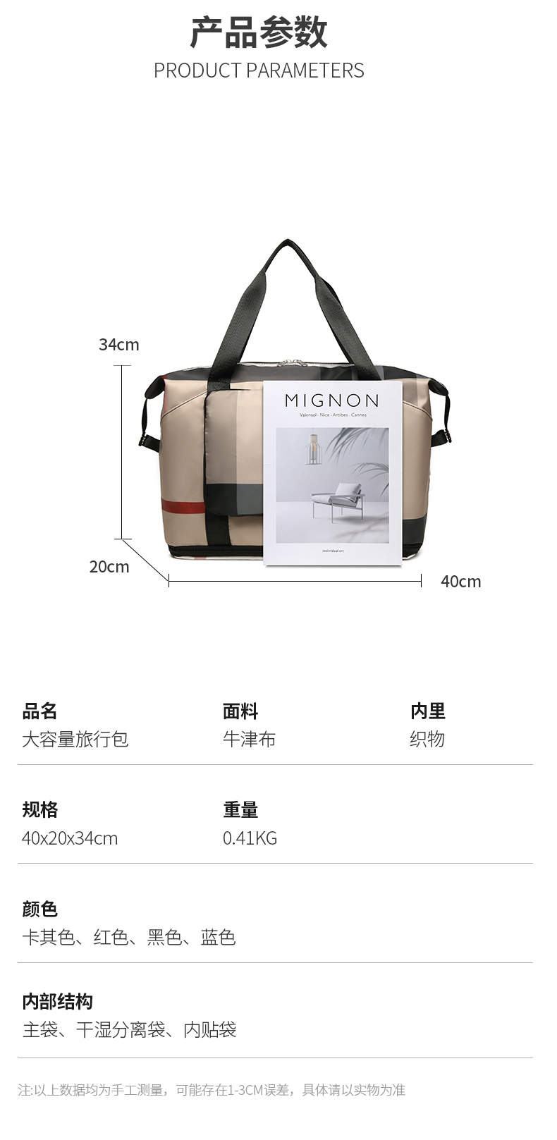 大容量旅行包轻便待产收纳袋健身运动瑜伽包旅行出差手提行李包女