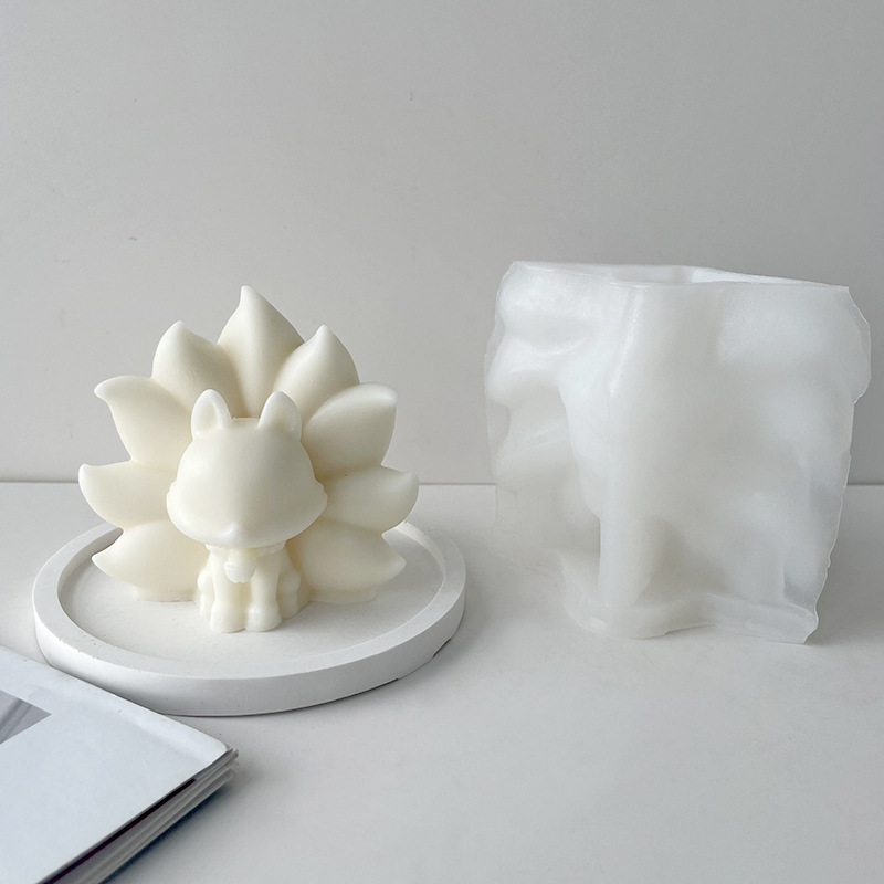 水晶滴ゴム金型立体九尾狐シリコン金型diy九尾狐香薫ろうそく置物金型