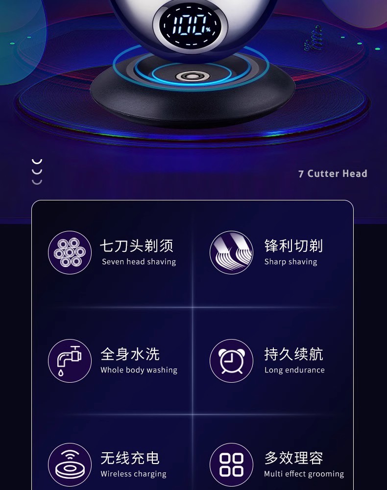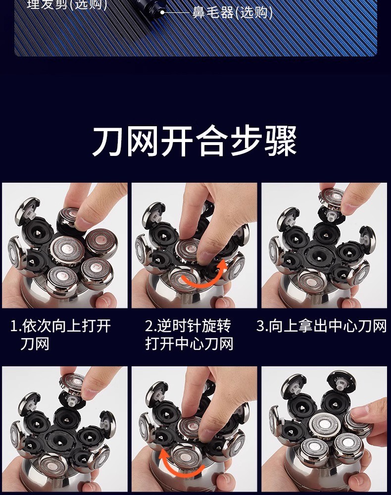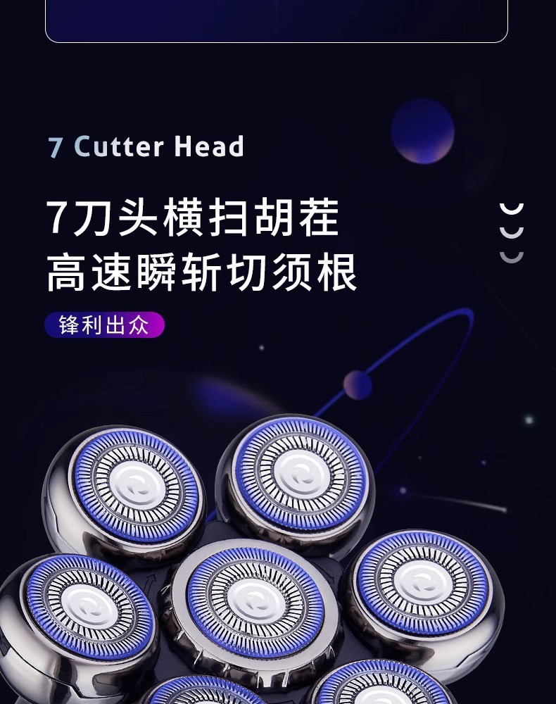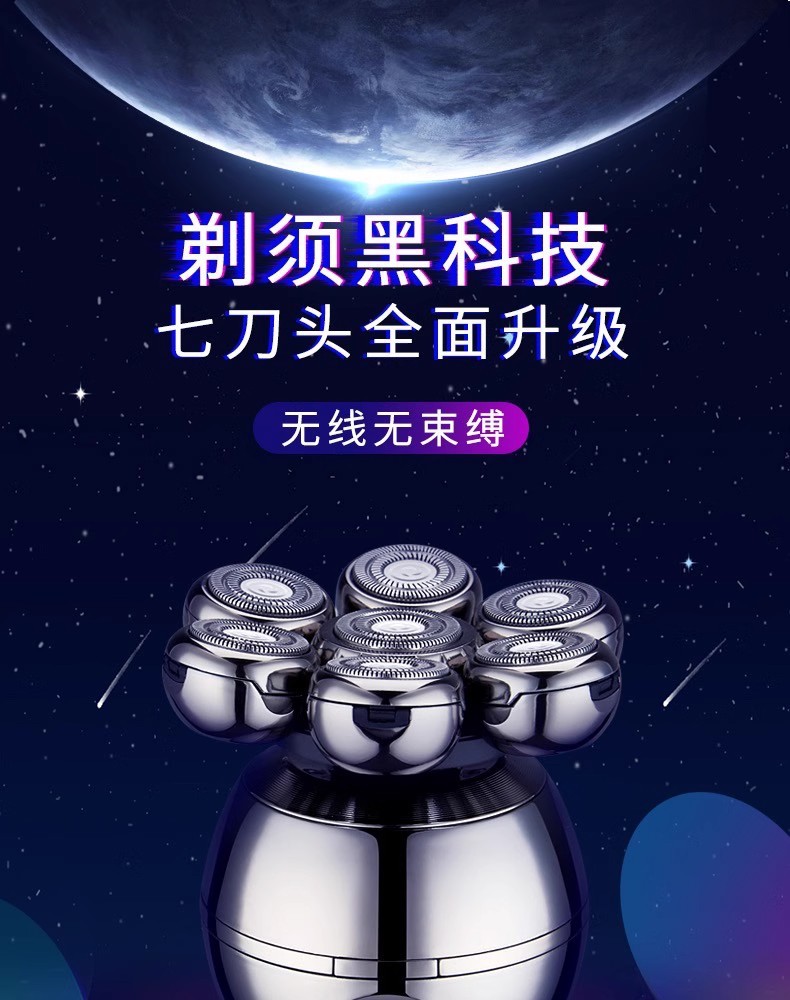 剃光头理发智能男士刮光头七刀头电动剃须刀充电式刮胡刀厂家批发