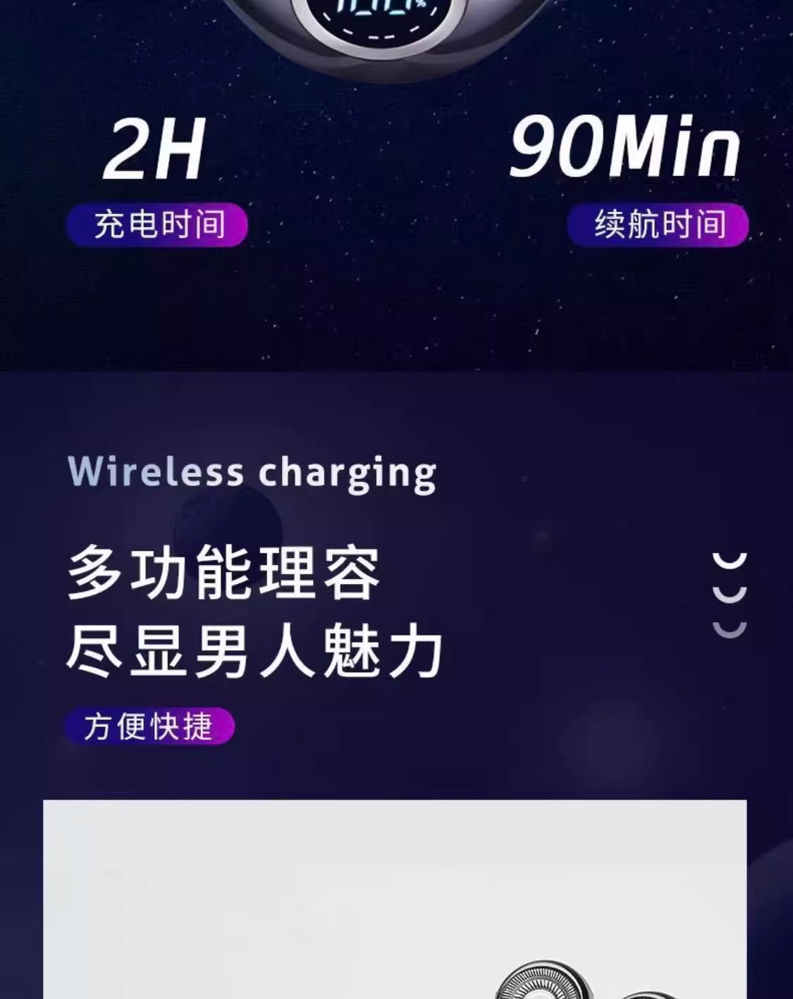 新型専用シェーバー、小型デジタルディスプレイ電気シェーバー、充電式多機能バリカン、光頭用ツール